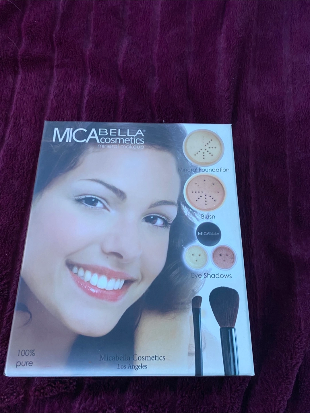 The makeup set includes mineral foundation, blush, and eye shadows. Contains two makeup brushes. Creating beautiful looks is so relaxing, isn't it?