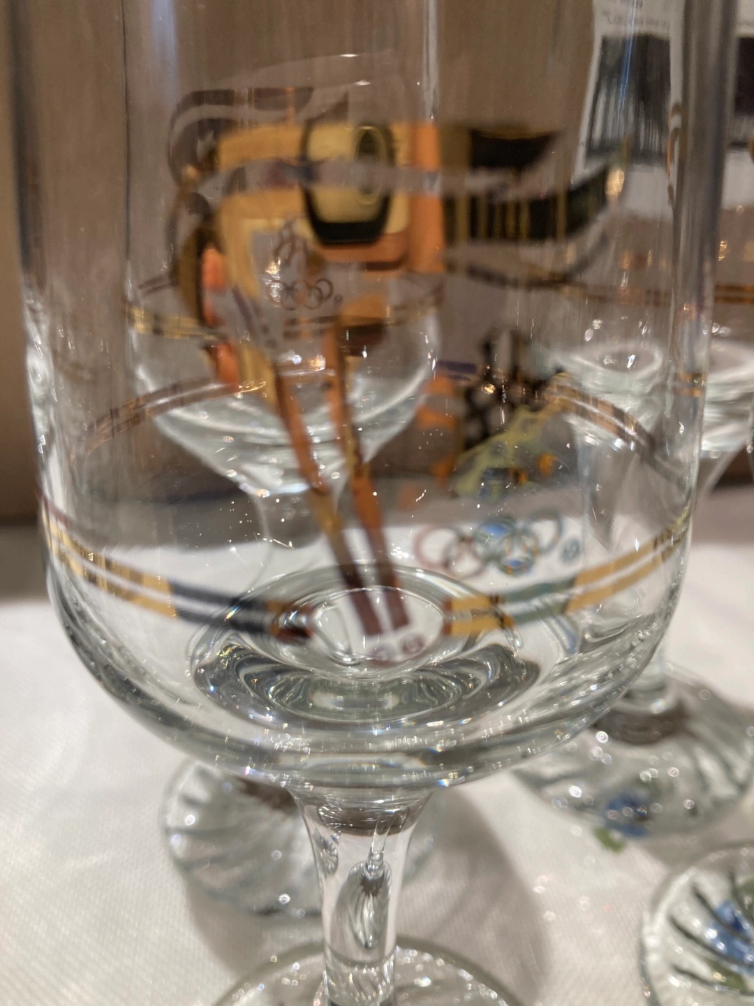 These beautiful glasses come with gold rims and an Olympic design. A nice item for your next friendly get-together. I have a total of 14. Can be sold separately for $5 each or $60 total