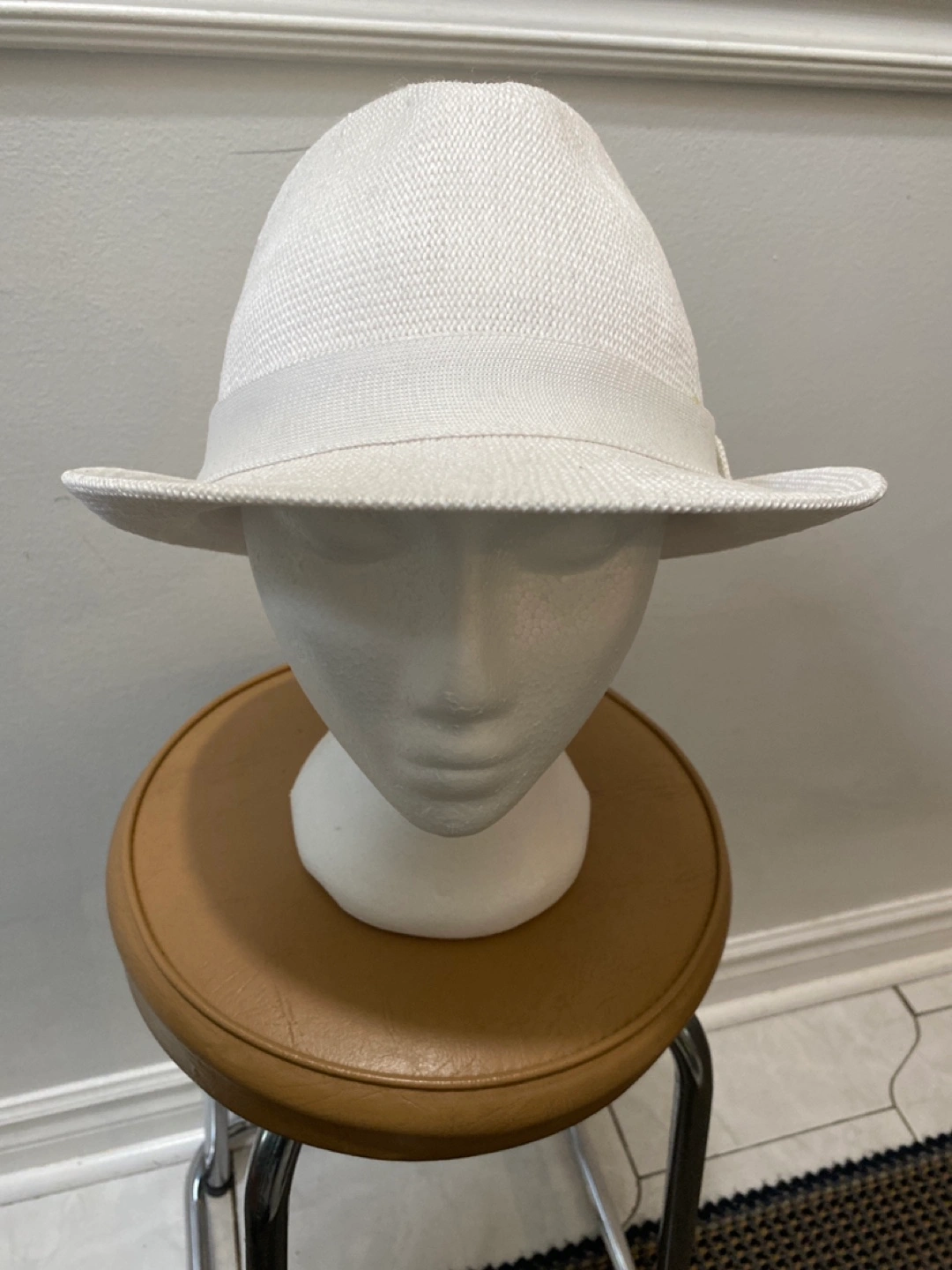 White classic hat. Perfect for adding a touch of elegance to any outfit, imagine wearing it while sipping coffee in a cafe.