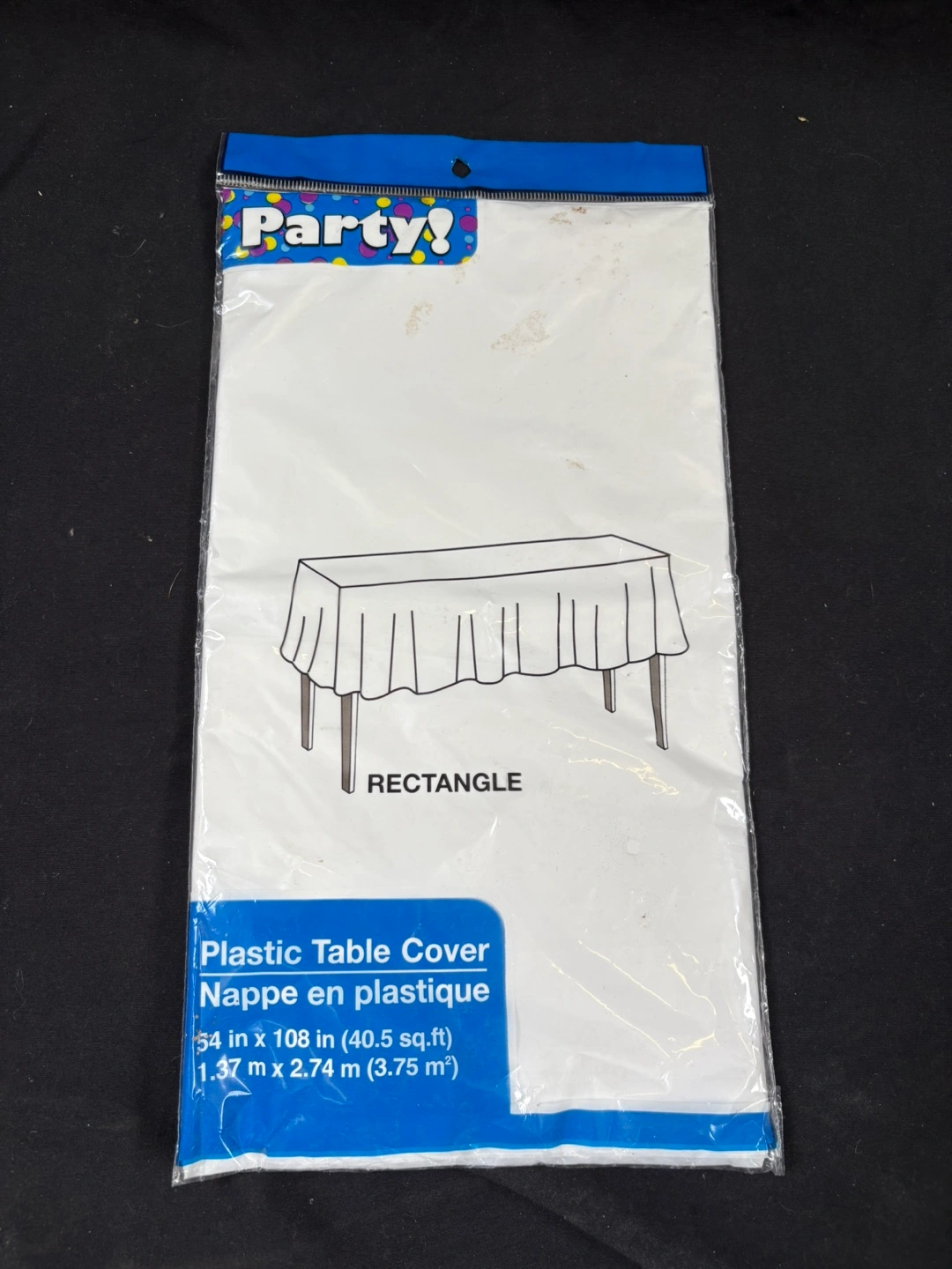 New A rectangular table cover. White colour. Still in the packaging. Perfect for your next gathering. $1 Pick up Victoria Park and O’Connor area