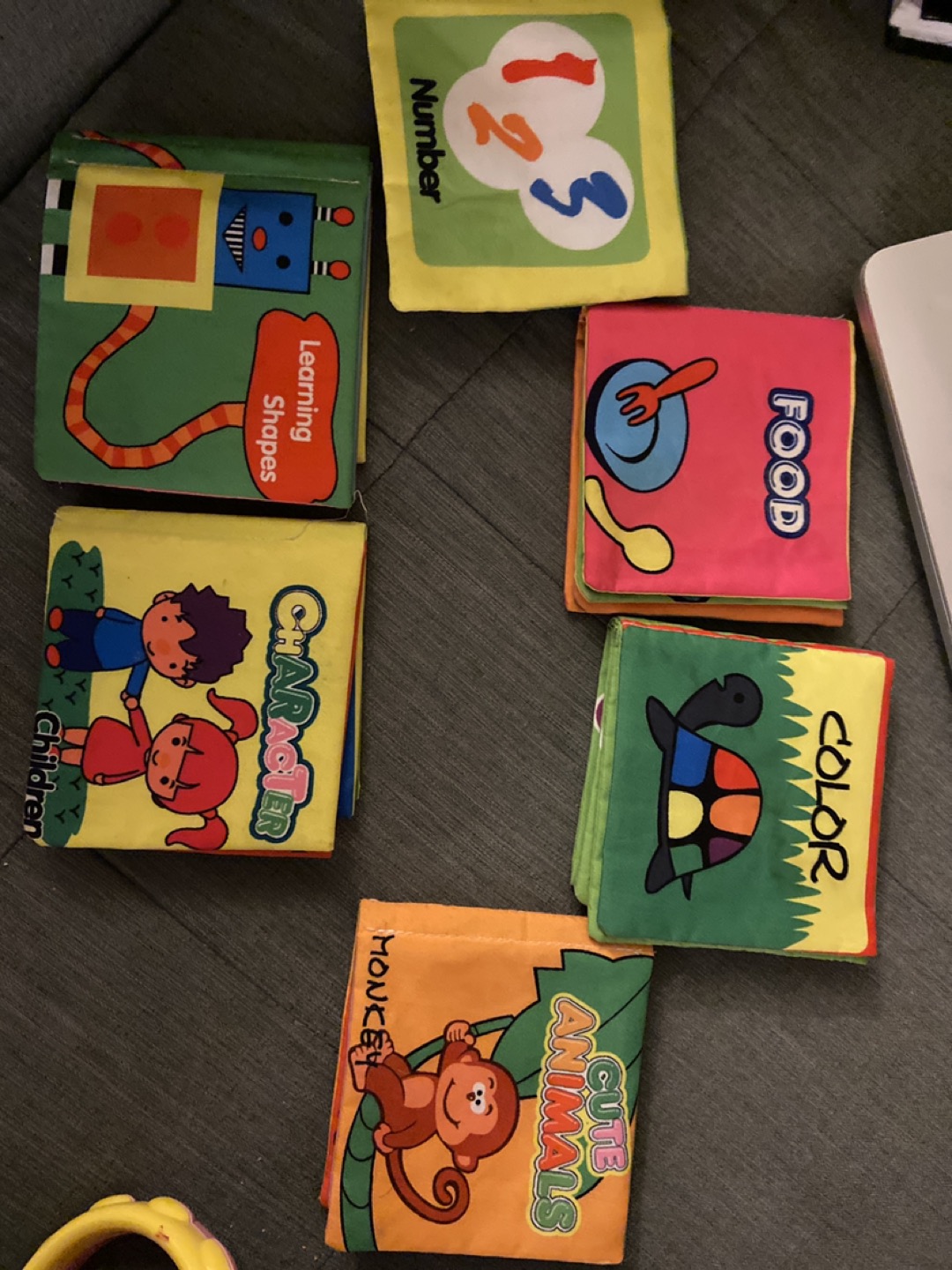Sturdy and washable cloth mini books for babies to learn shapes , colors , animals and more