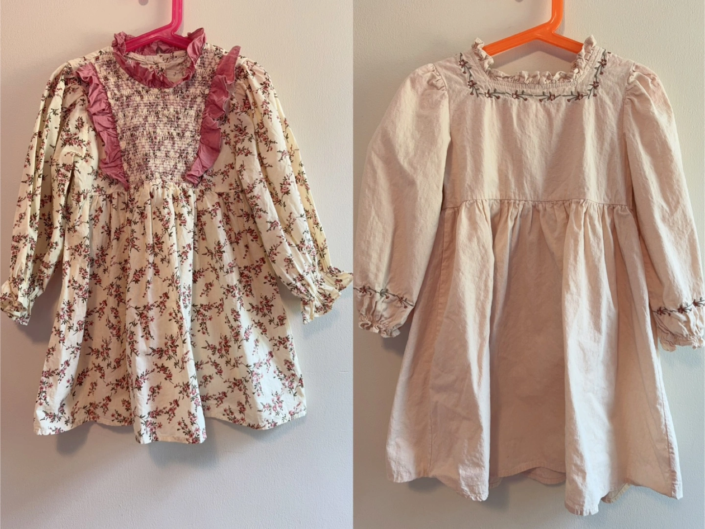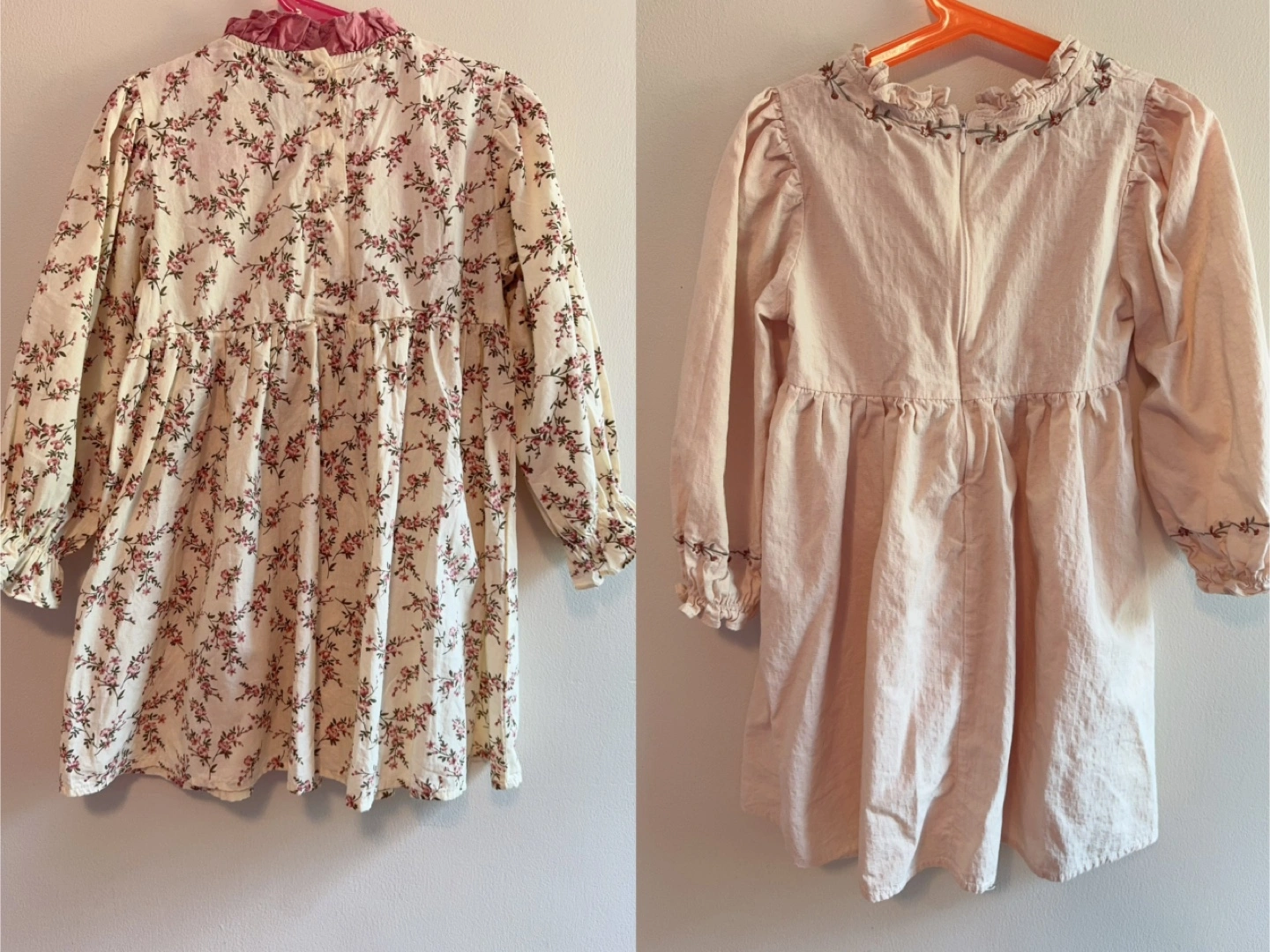 These dresses are made of 100% cotton, feature long sleeves and a flowy skirt. Both are in beautiful, soft colours. Together 15