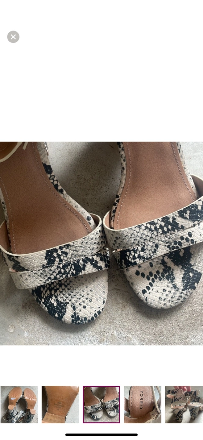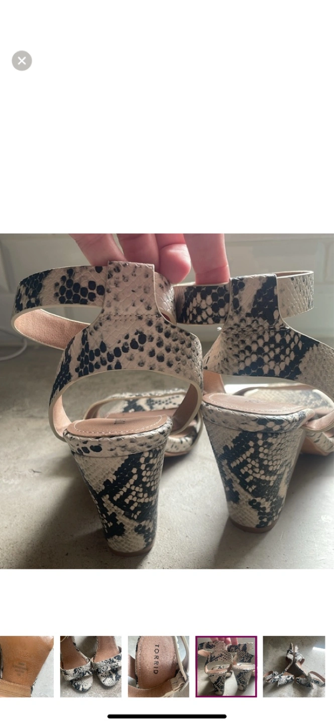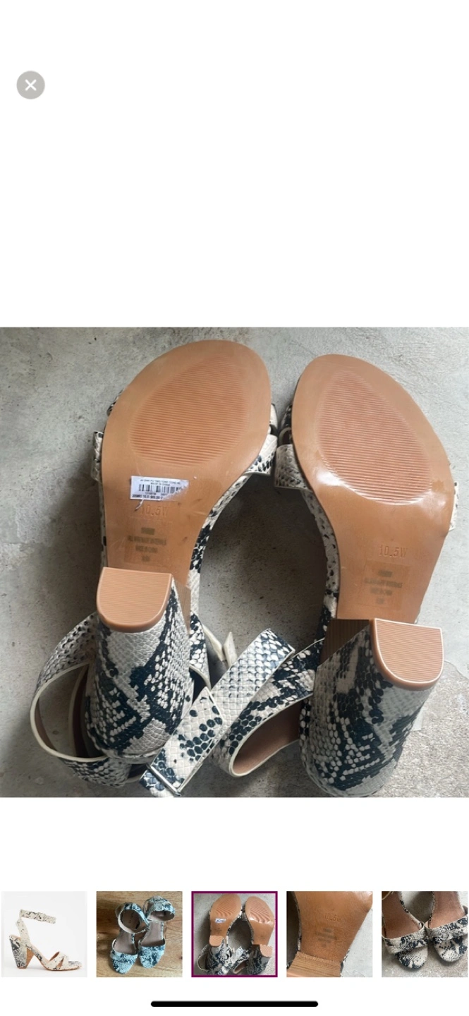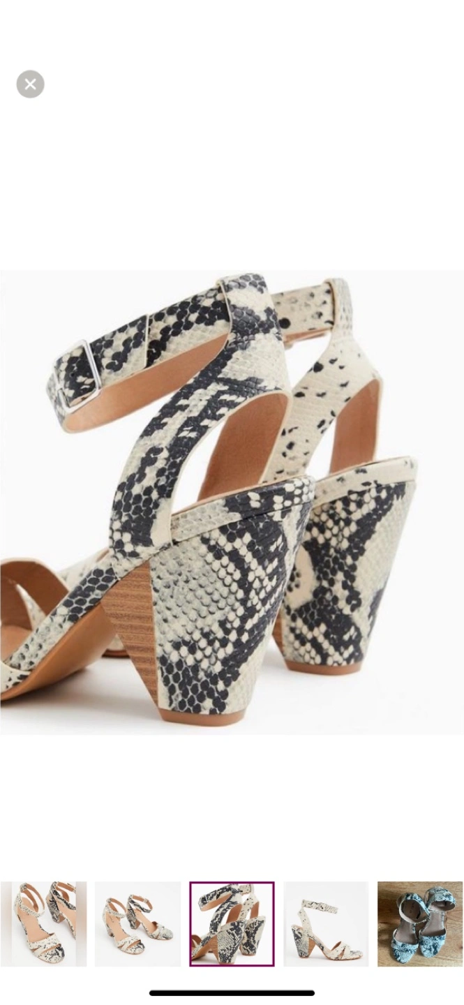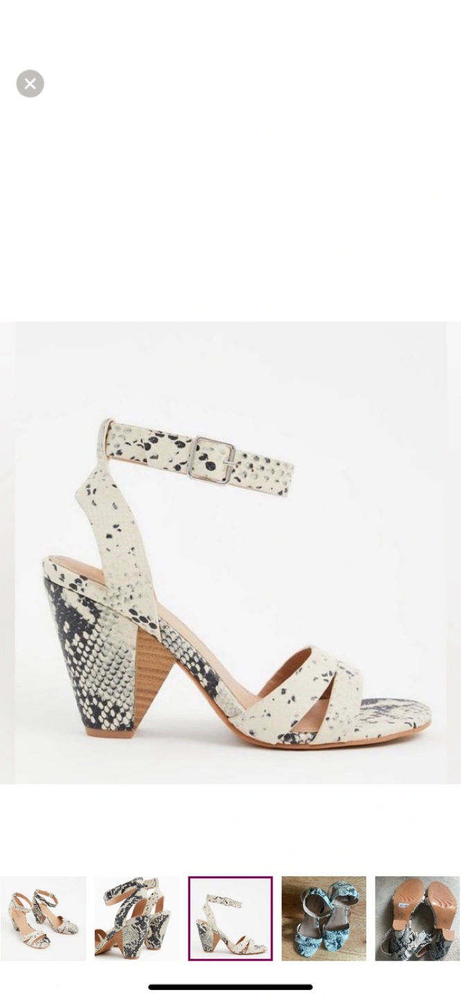 Sandals with a snakeskin print. Featuring a block heel, and ankle strap. These would look amazing with a summery dress, perfect for your next event.