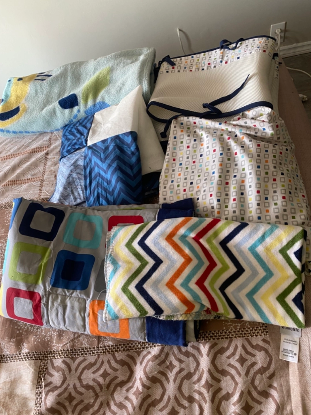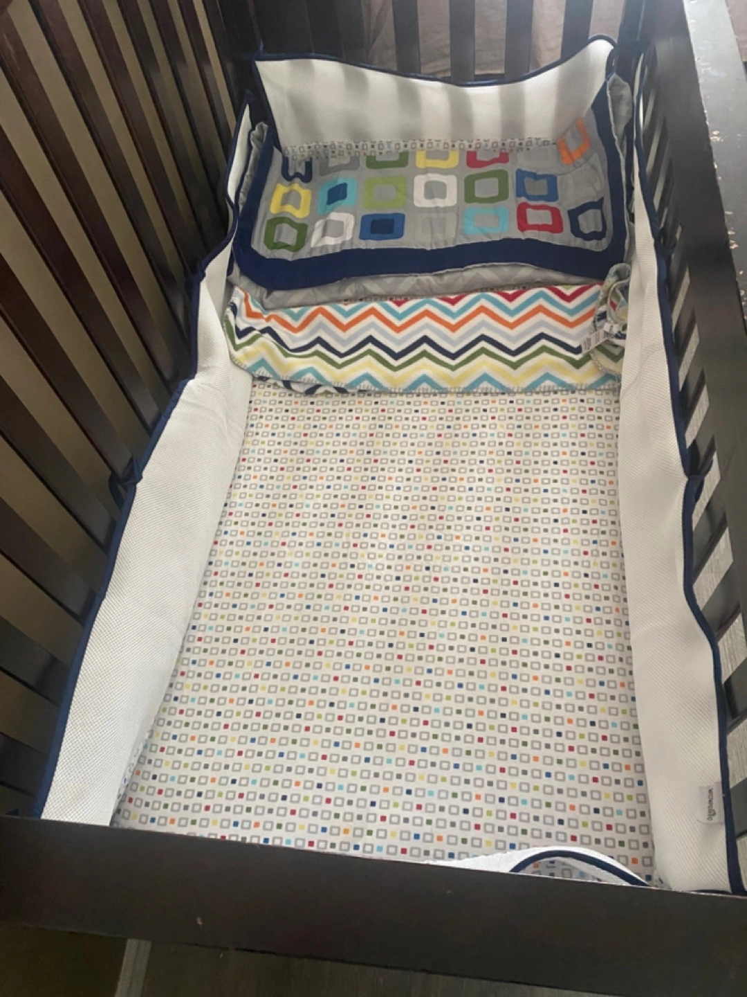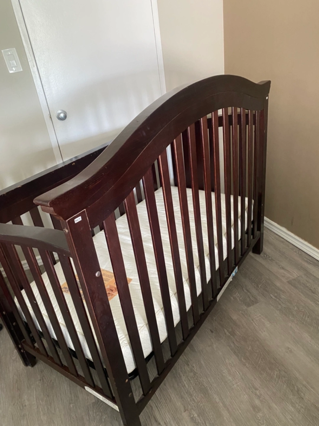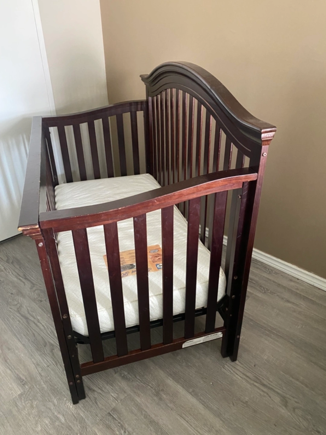Selling 4 in 1 convertible crib made of solid wood. Used handful of times as I co- sleep my baby. Selling with mattress as good as new. Will also throw a crib set which includes baby bumper, a fitted sheet, 1 comforter, 2 extra blanket (My baby didn’t use the comforter and blanket at all) included for free It features a highly functional design that allows the crib to be transformed to a toddler bed, a daybed and a full-size bed to accommodate your growing child. Adjustable mattress heights for convenience when baby learns to sit or stand