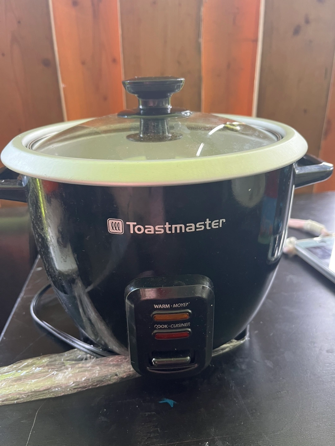 Black in colour. Glass lid with a white trim. Comes with a knob. Control panel on the front with two settings. A good way to make a delicious meal at any time of the day. Work well