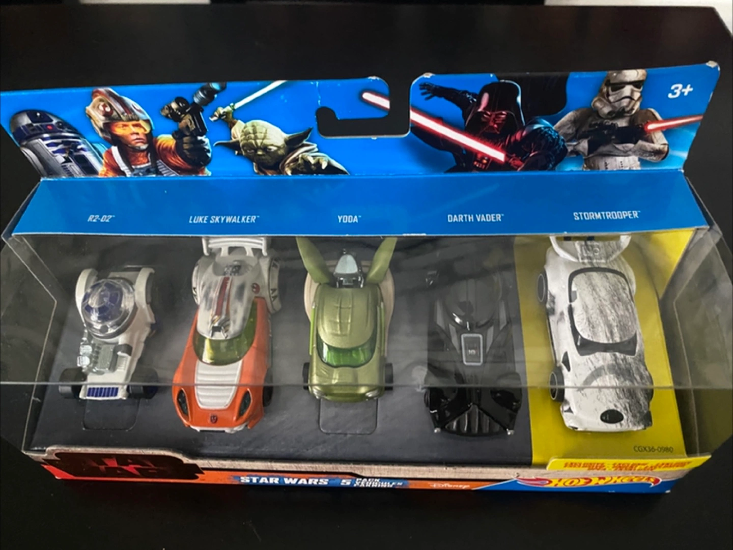 NEW!! Star Wars 5 Pack Hot Wheels Exclusive! Disney 2014 Set includes Luke Skywalker Darth Vader Darth Vader Yoda Storm Trooper R2D2 Never opened. NEW!! Great for the Collector! Cash and pick up only, Cawthra and Lakeshore area in Mississauga. Price is Firm. No holds.
