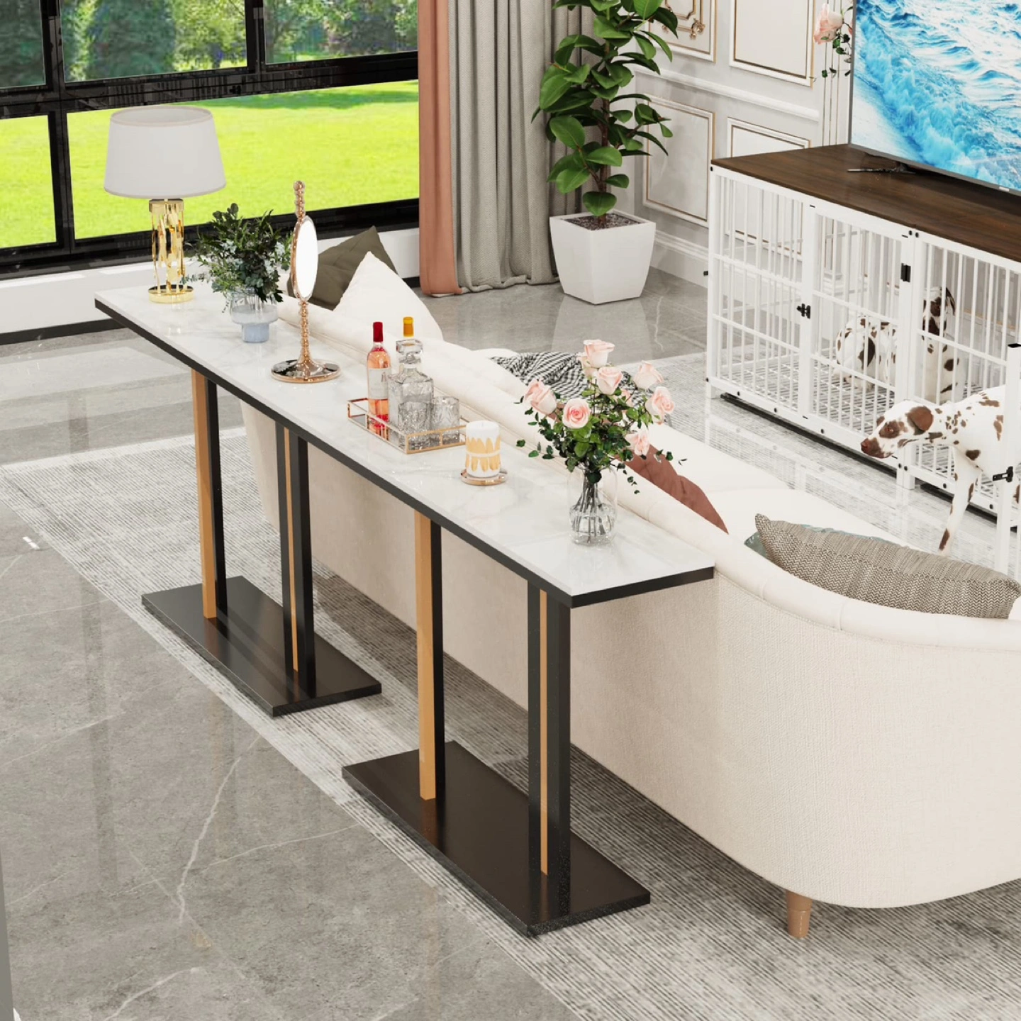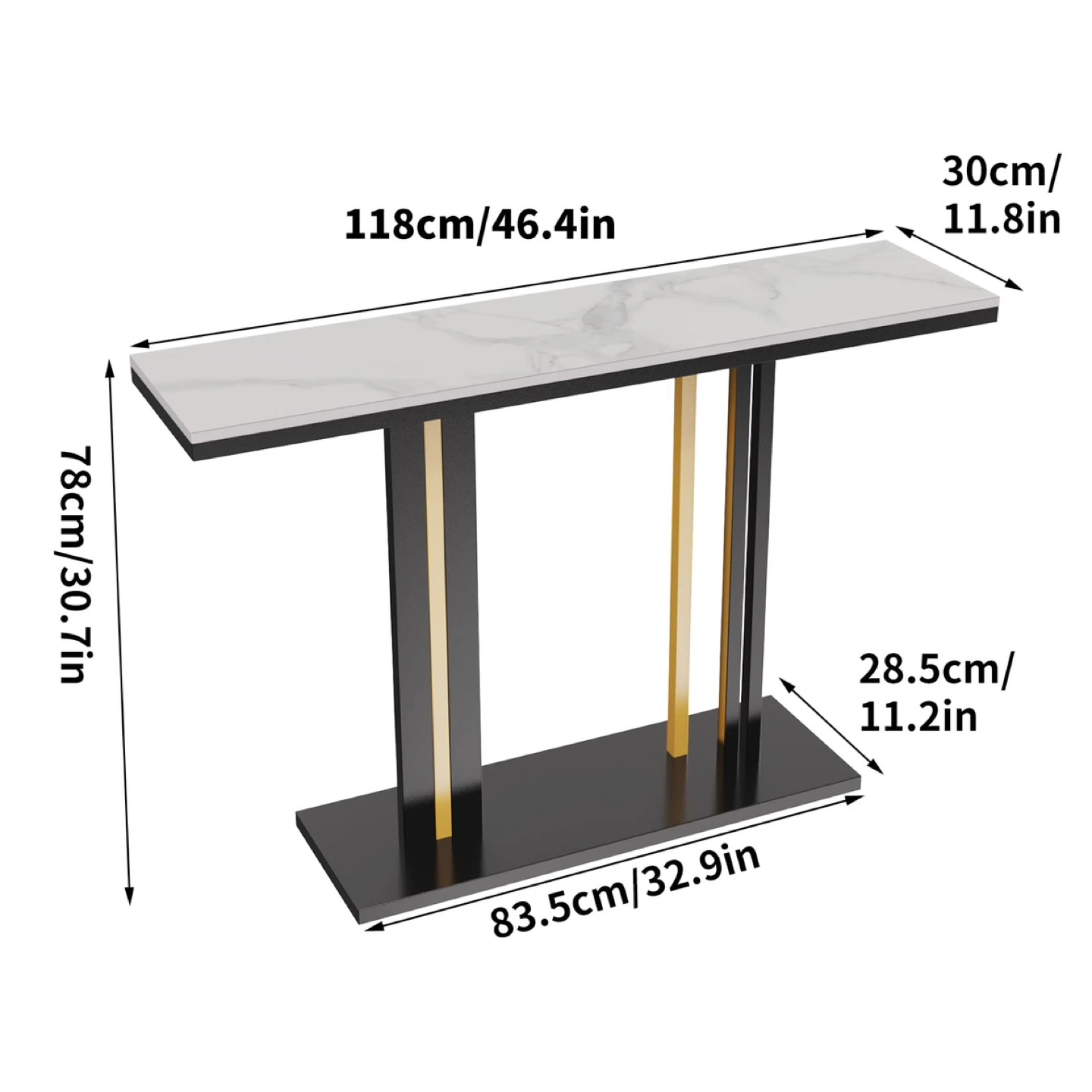 Brand new in original box Please check images for designs and prices DM for more information on any design. Pickup/Delivery available all over GTA Material Sintered Stone, Metal Mounting type Floor Mount Room type Living Room, Home Office, Hallway Special feature Scratch Resistant Product Dimensions 30D x 120W x 78H Centimetres Luxury Console Table - If a Luxury elegant console table for your living room is what you’re looking for,Snow mountain white pattern sintered stone console tables is best choice,with the elegance of marble but a toughness that far outweighs any natural stone,With metal legs in a gold and black color finish, this console table sits on an open geometric frame that’s totally modern,Its tabletop is made from snow mountain white textured sintered stone for a contemporary twist on a luxury look Long-lasting Gloss Tabletop - White console tables for hallway made of sintered stone, so that all natural colours and textures will be visible,Sintered Stone is manufactured with high pressure and extreme heat,making it extremely tough and resistant to heat,cold, scratch and chipping , it won’t change color and Stainproof non-permeable,Even the temperature gets to1200℃,so if you put hot coffee or hot soup pot directly on it, it won't harm the tabletop Stylish Geometric Frame - The clean-lined golden is a perfect embellish to black finish metal frame,strong linear frame adds visual interest but allows your retro lamps,plants or collectibles to take center stage,Add it to your living room,hallway,entryway,foyer,console table behind sofa,which provides an elegant attractive effect,Console hallway table placed against a wall very stable,max load 30kg,you can use them for just about display any artworks Eye-catching Sofa Side Table - Accent console tables for entryway is compact enough for an entryway,perfect as a place for your keys or phone,in hallways to fill up empty spaces,that can be used as a desk,Accent sofa table,also know as a sofa table,Placing them behind a sofa is another popular use,The geometric liner shapes of this console gold metal add overall glam look,will ensure it is a much admired addition to your hallway or living room for years to come Perfect Size & Easy Assembly - Round curved-edged corners are well polished to prevent bump against injuries,offering smooth touch and a safe experience,Product dimension 46.4x11.8x30.7 inch,All the hardware and instruction are provided,read the steps carefully then assemble the table,hallway console table perfect for anywhere,entryway,corridor,living room,office,couch,The solid sleek marble tabletop serves as a perch for your favorite vases and artworks