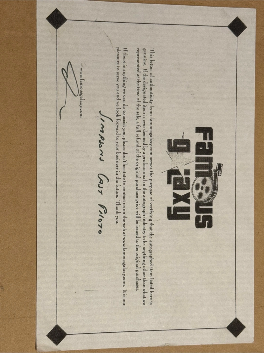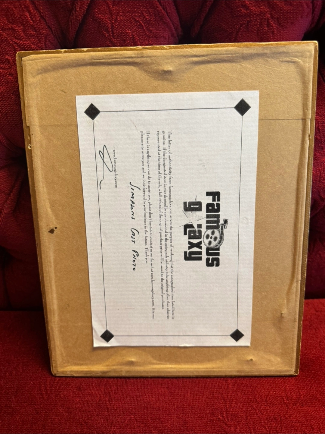 A framed photo of the Simpsons cast, with signatures. This would be a lovely piece to hang up in any home.
