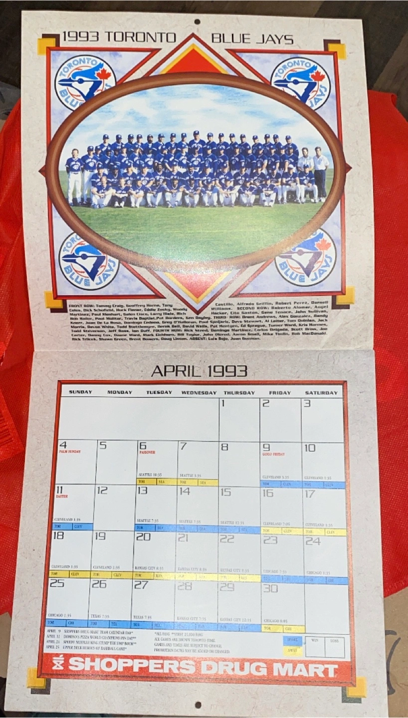 Vintage 1993 Toronto Blue Jays Shoppers Drug Mart World Champions Calendar