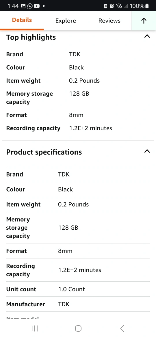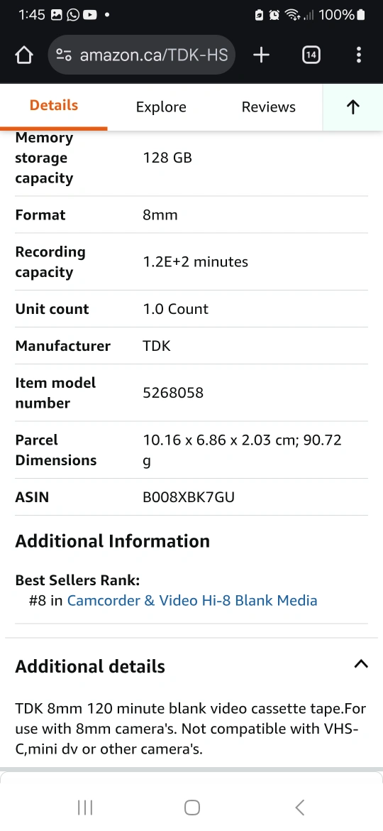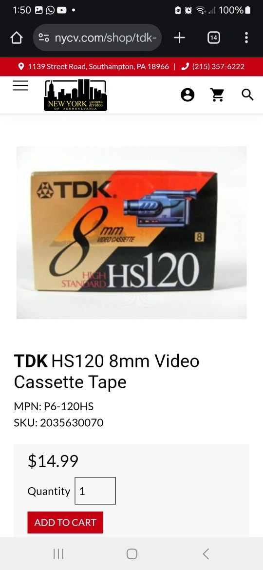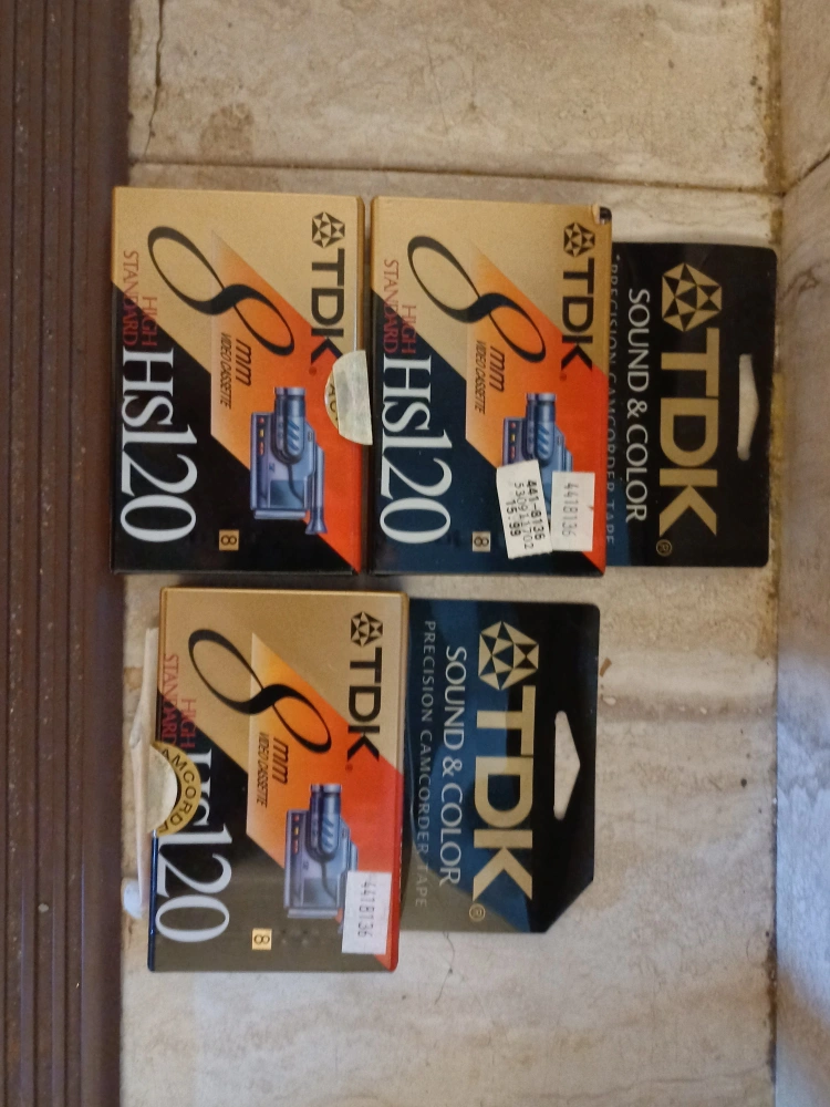 NEW SEALED: $10.00 EACH 3 of TDK 8mm video cassettes, HS120. -> From Amazon site's Additional Details, as shown in pictures posted: "Not compatible with VHS-C, mini dv or other cameras"