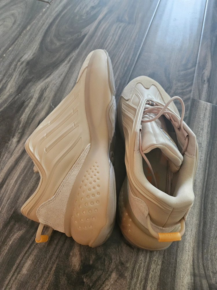 Light beige sneakers. Unique design with a suede toe cap. Round toe design. Perfect for a comfortable walk or to relax after a long day.