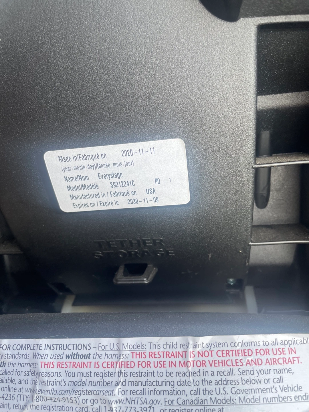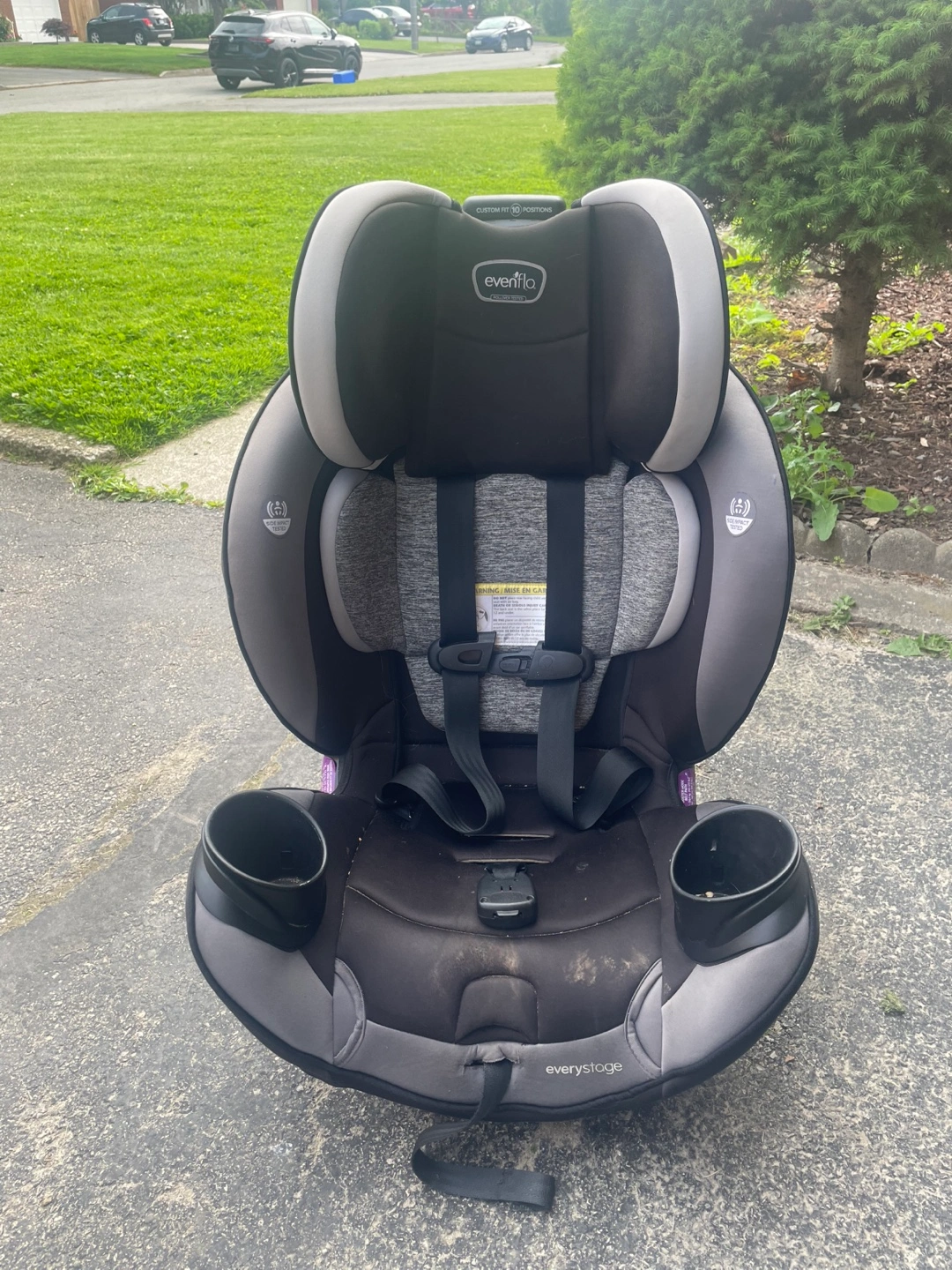 Free FCFS Evenflo Car seat. Expires: 2030-11-09. It will need to be cleaned. May contain peanut butter, dairy and crumbs. Lol
