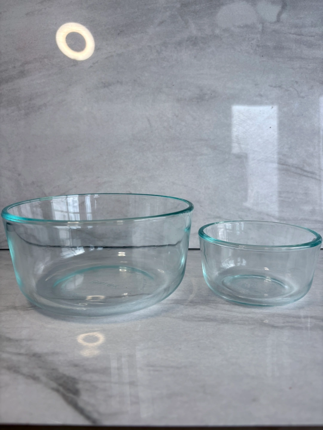 Set of Glass mixing bowls - 2 Pyrex Bowls Oven + Microwave Safe