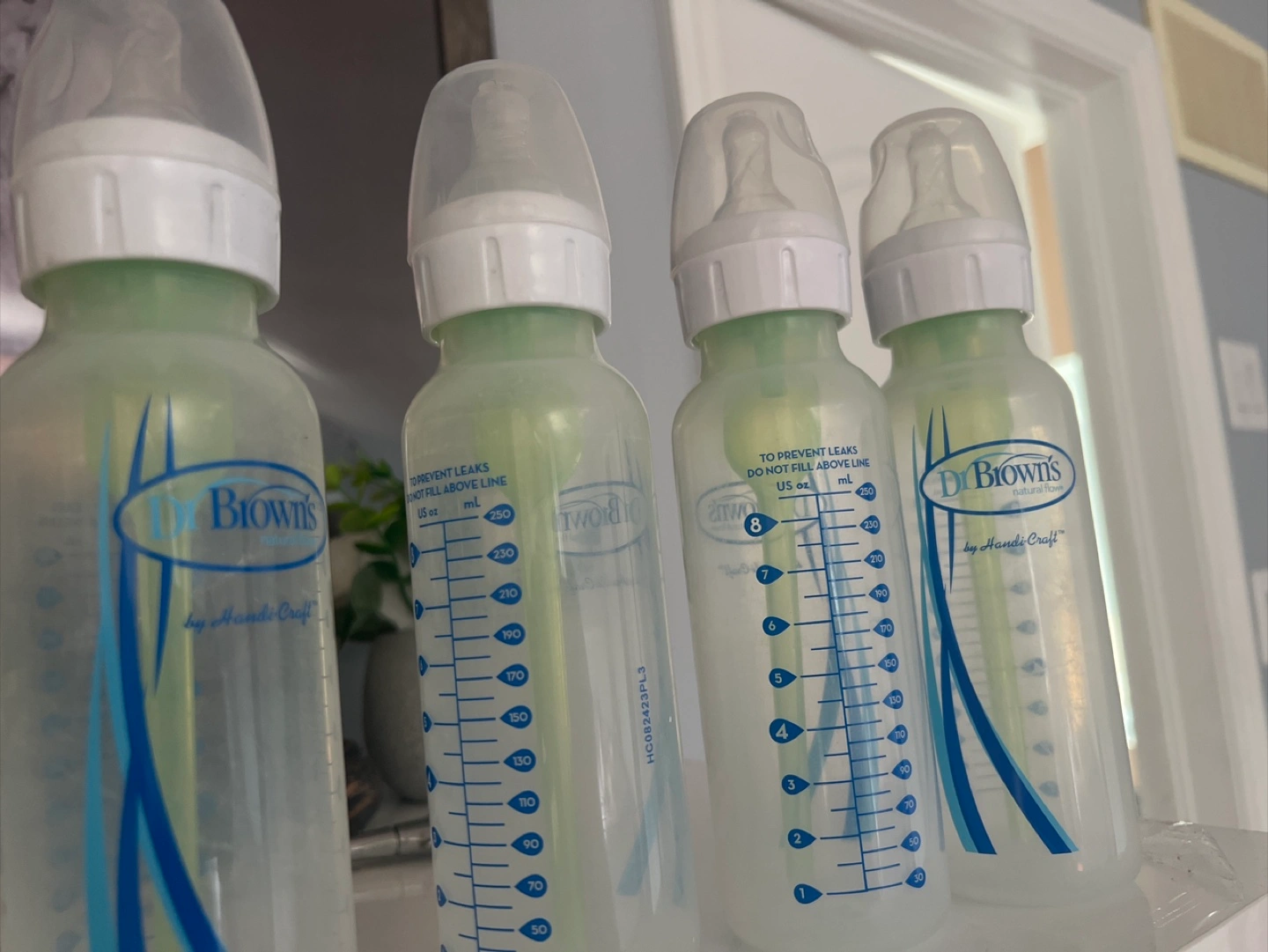 Offering a set of baby bottles. Clear bottles with measurements. Included are white tops and bottle nipples. A great way to make feeding time a relaxing experience. 5$ each