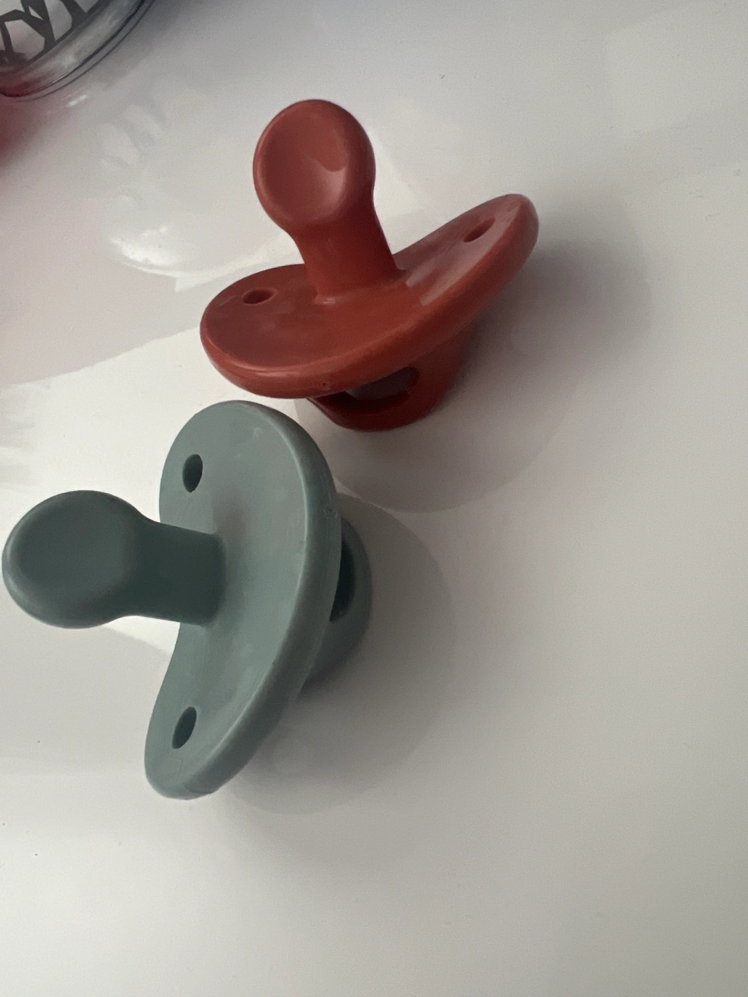 A set of two pacifiers. Both in different colours. Wonderful for soothing a baby.