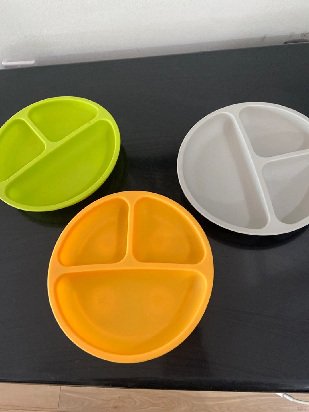 Plates in 3 different colours. Divided sections. All three have suction cups on the bottom. A great way to keep meal times calm and relaxing for everyone. Never used - not even once. Selling all three for $5