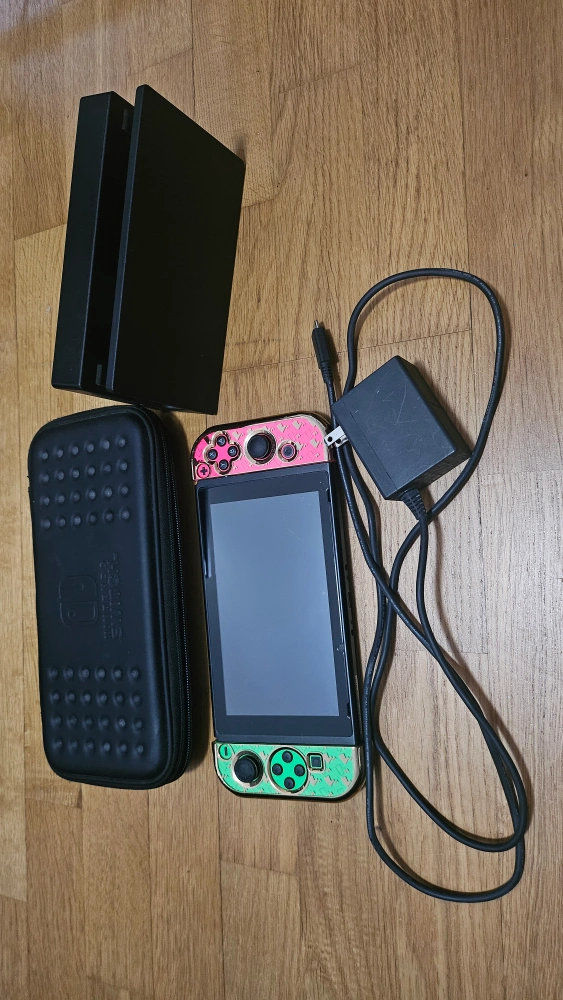 Excellent condition, still works really well. Bundle includes console, exclusive pokemon joycons (broke the original joycons, so you get limited edition joycons!!), docking station with charging cord, and will include the HDMi (not pictured, but will unplug it once we create a meetup), and travel case.