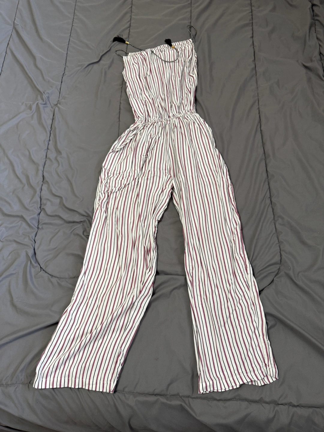 Striped pattern. Featuring a strapless bodice. Wide leg design. This outfit is perfect for a relaxing day out. 3 jumpsuits like New worn once only very soft material and stylist