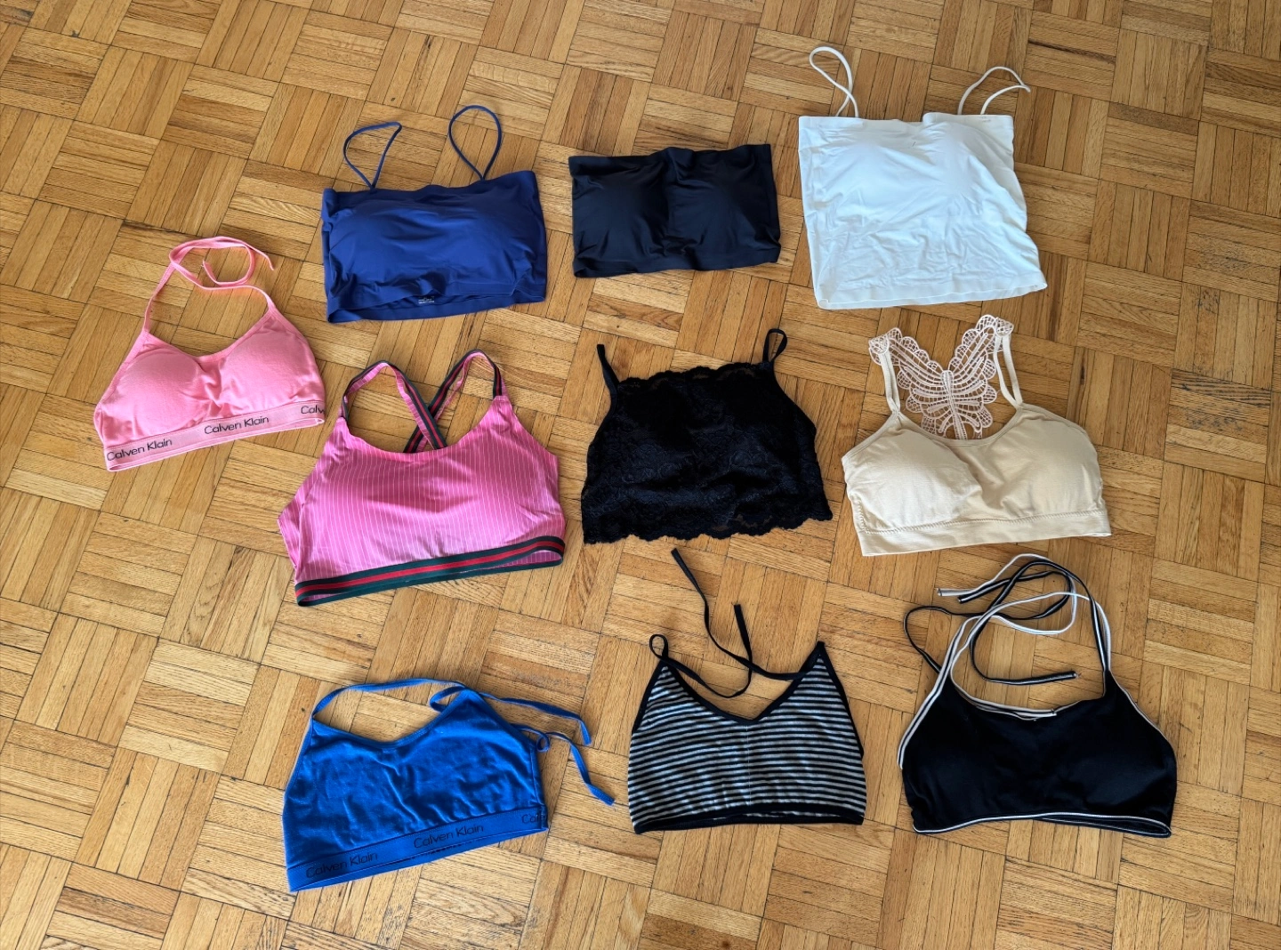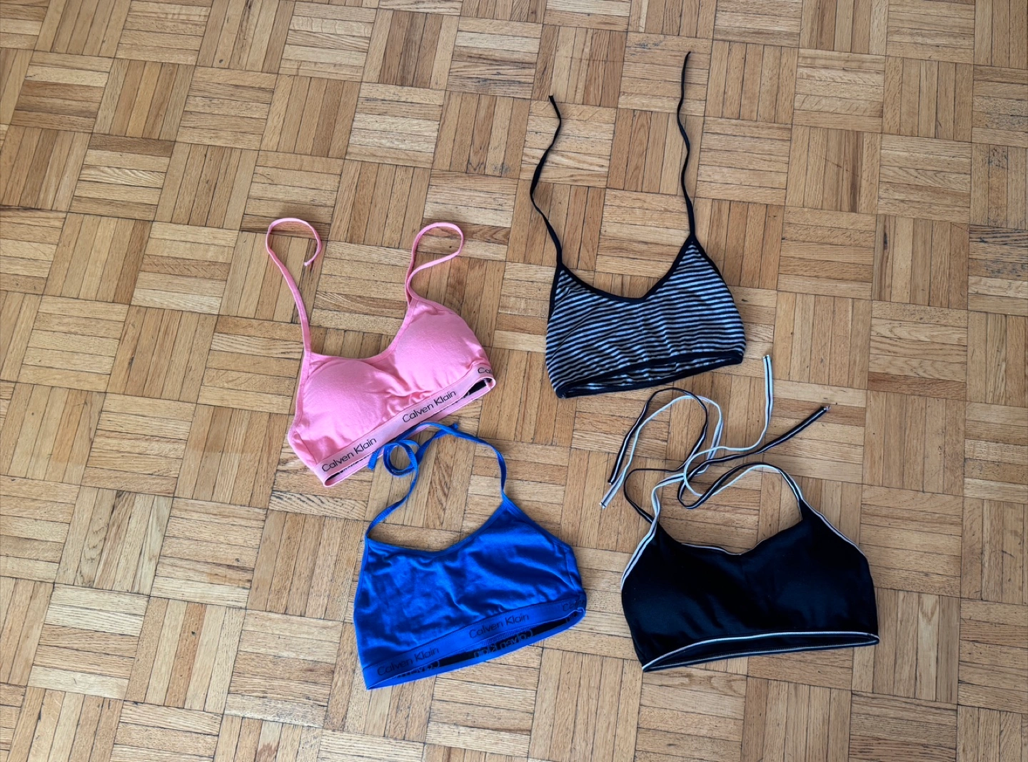 I'm selling an assortment of bras. Various colours and styles are available. They are all well cared for. I hope you enjoy them and can find them useful in your everyday life.First photo is Brand new second photo is used one each 4$ all together 25$