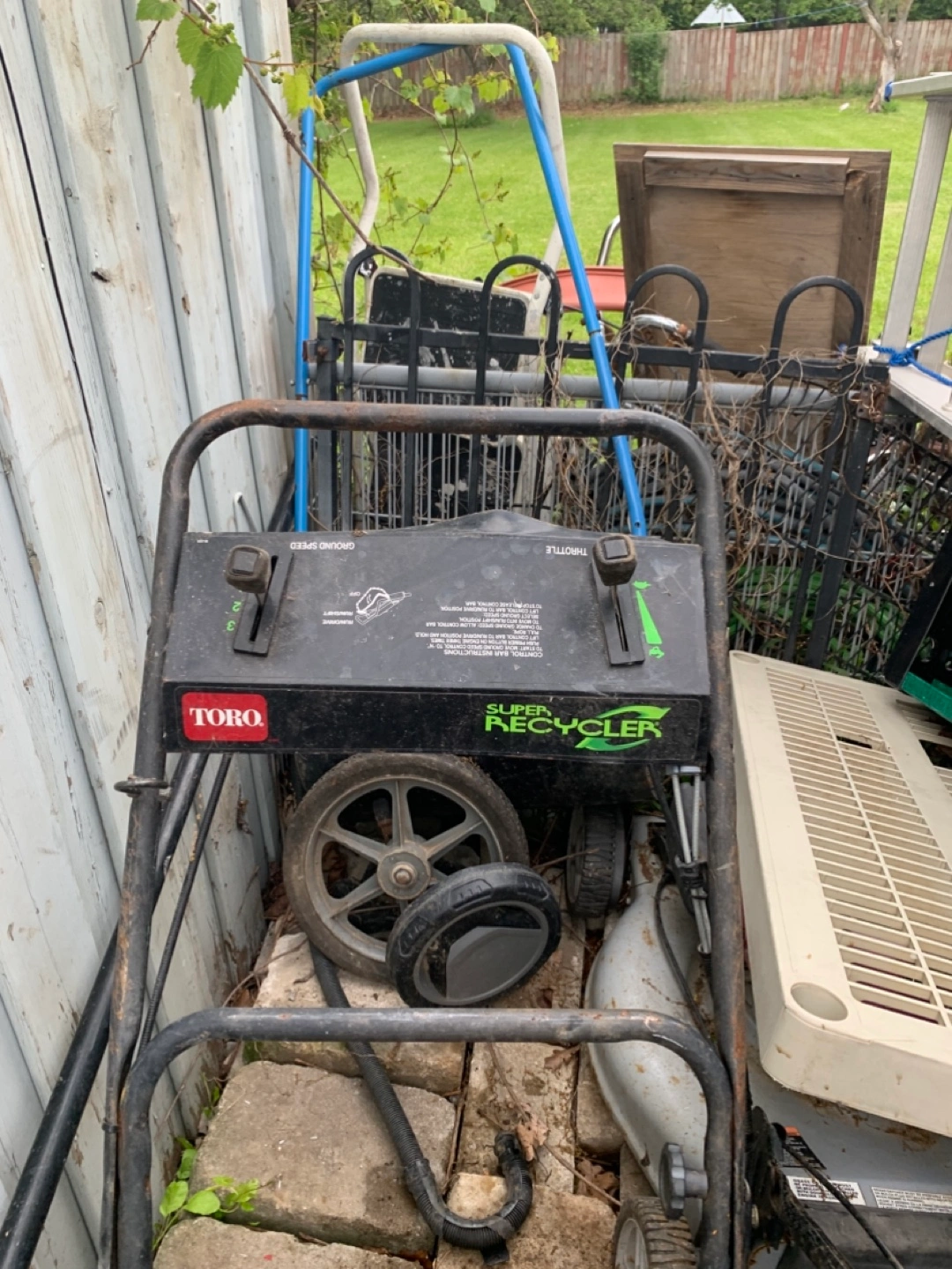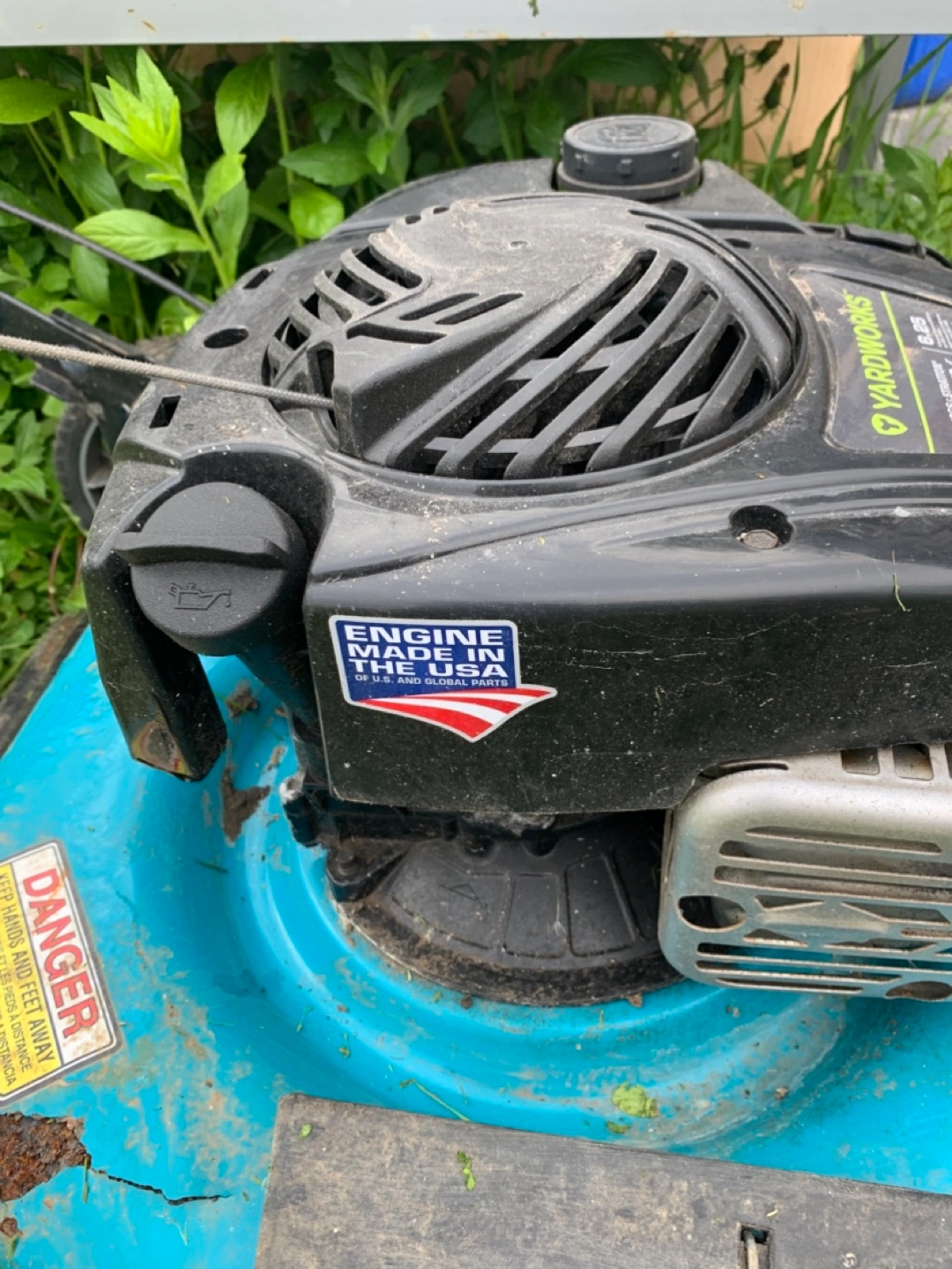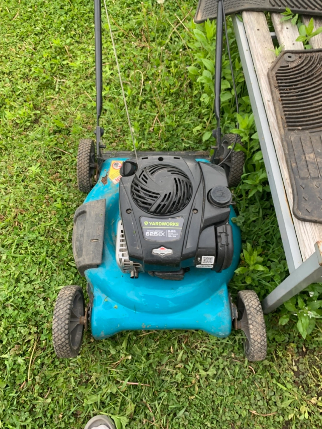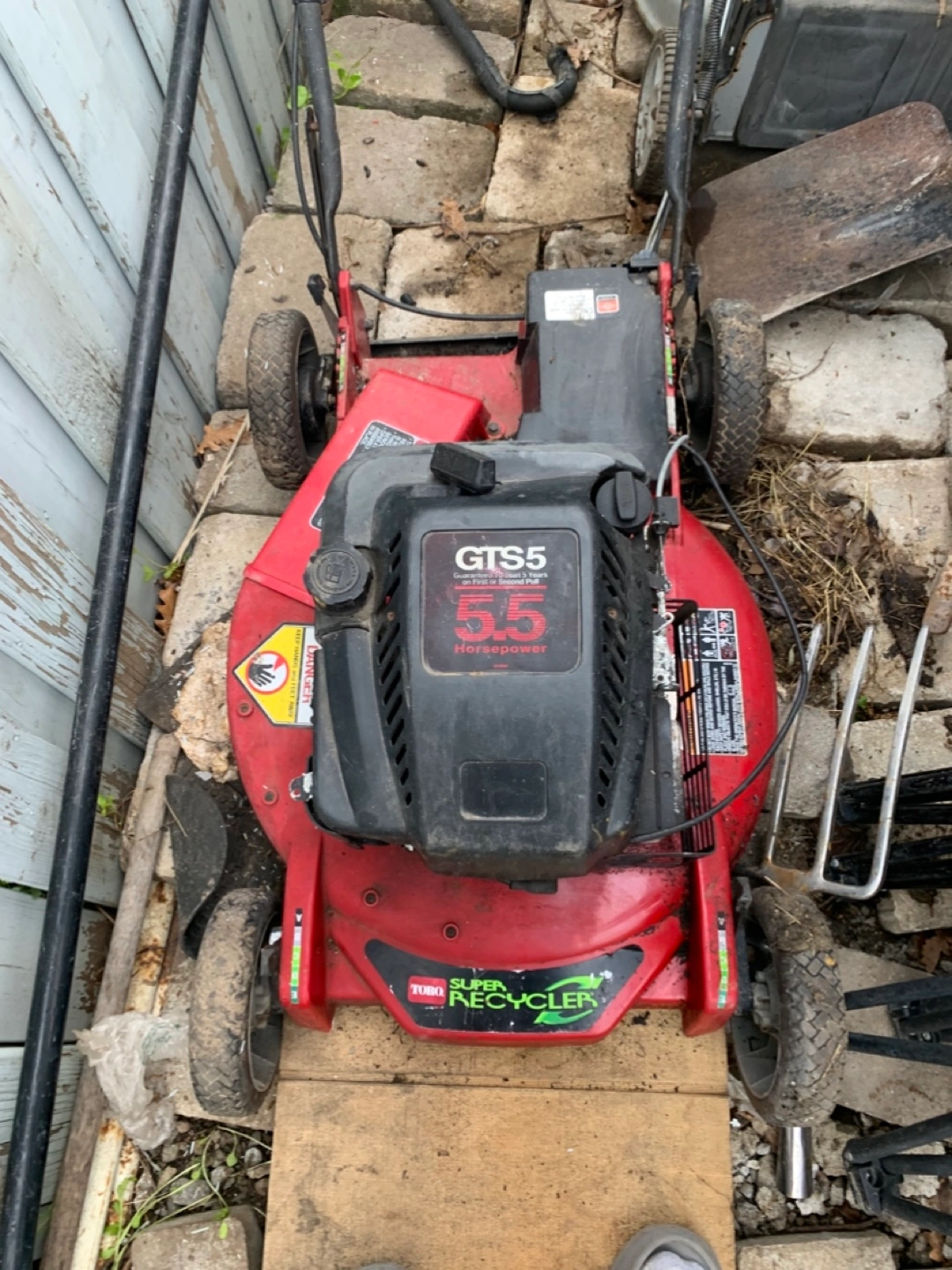 Red lawnmower, showing some wear. Features a black engine compartment. You will feel a sense of accomplishment after using this lawnmower. One Turo $120 and one yard work $80 Noah 6477045726