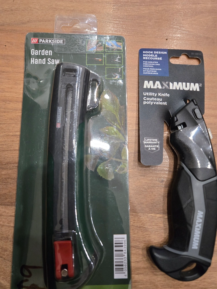 Offering a hand saw and utility knife. The saw features a foldable design. Both tools are new. Perfect for cutting some branches in your garden, or any other small task that needs to be done. both brandnew never used $14 for two items ,firm price