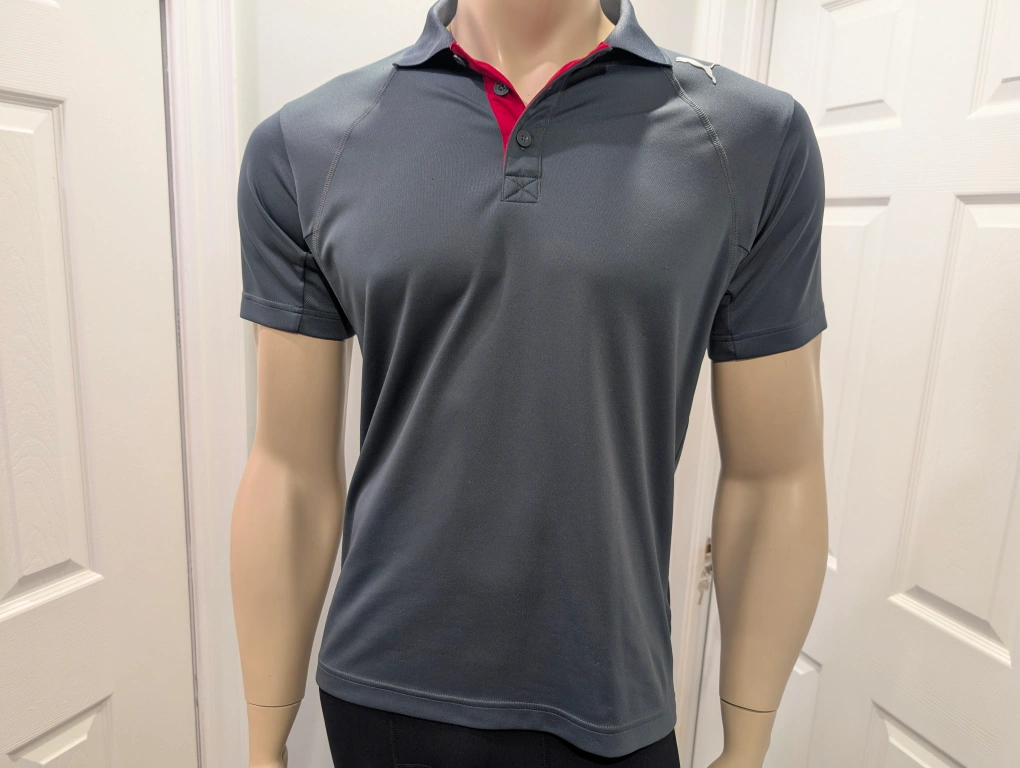 Excellent used condition. Perfect for golf or casual wear made of cool cell fabric for quick sweat wicking. Key Features: * Brand: Puma * Colour: Grey with red accents * Size: S * Style: Polo Shirt PRICE IS FIRM and if ad up then item is available. Crossposted. Pick up in North Ajax around Salem and Taunton Rd area. SFPF home. Please see my other postings and THANKS for your interest.