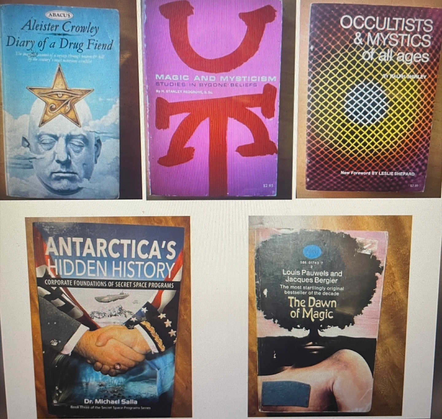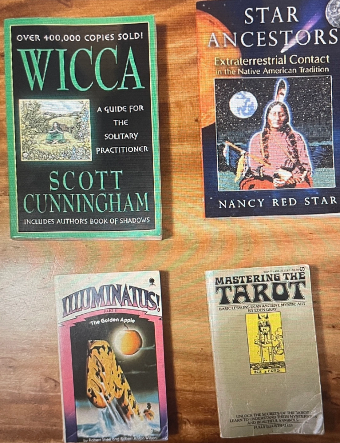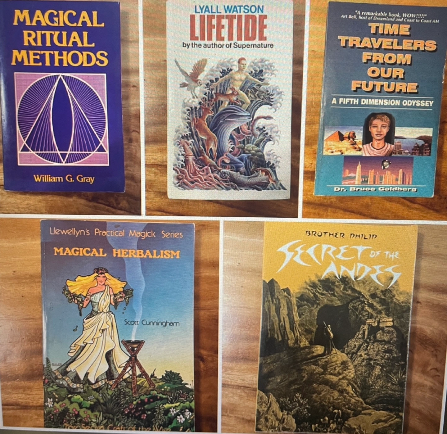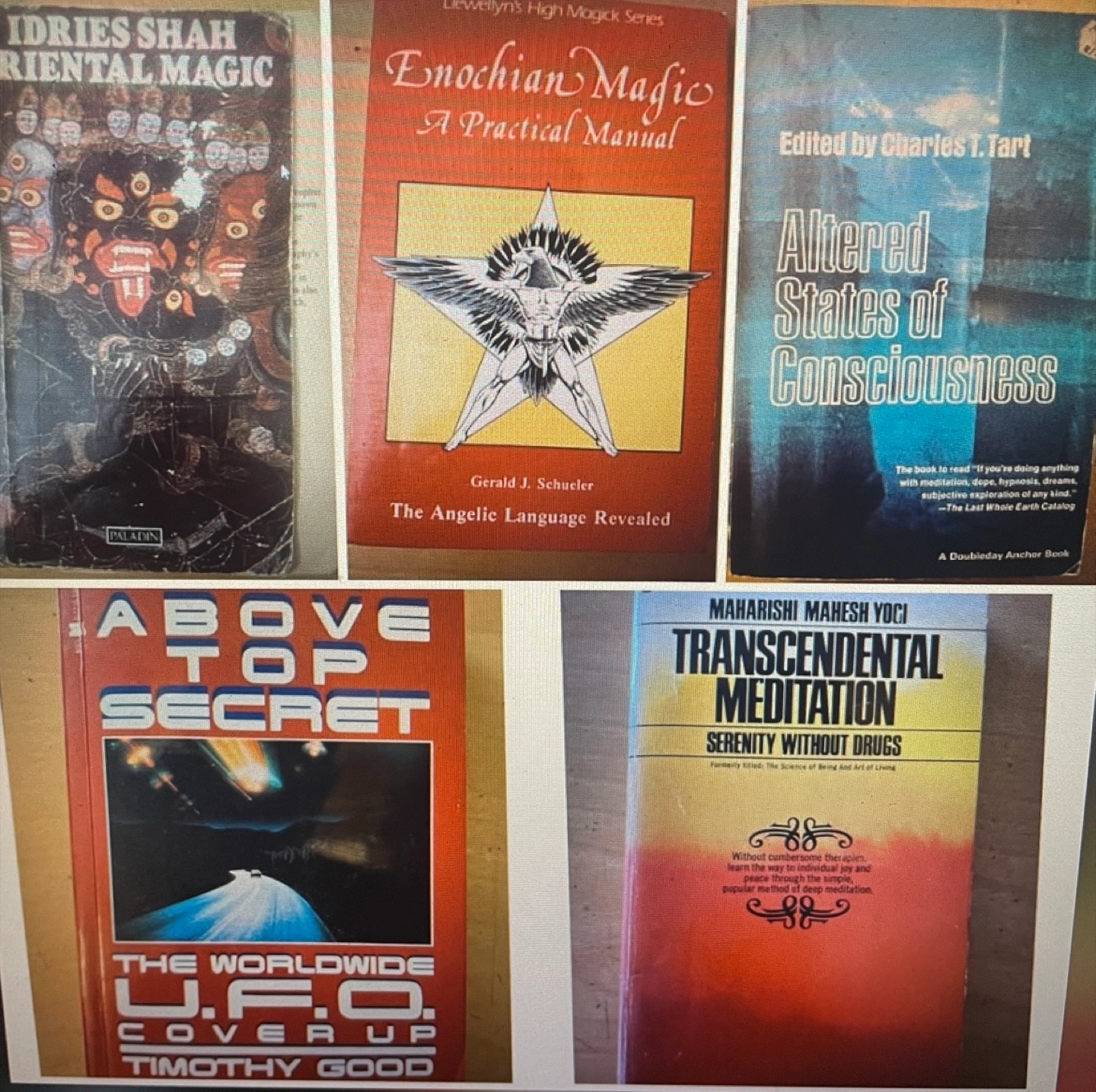 price is after each book ENOCHIAN MAGIC A PRACTICAL MANUAL SCHUELER 1985 LLEWELLYN ANGELIC LANGUAGE book has light general wear, and some stains on the side (see pics) very minimal writing inside. [$65] Altered States of Consciousness. Meditiation, Hypnosis Dreams Subjective exploration 1972 Charles Tart [$60] ABOVE TOP SECRET WORLDWIDE UFO COVER UP TIMOTHY GOOD 1989 [$15] Magic and Mysticism Studies in Bygone Beliefs H. Stanley Redgrove 1972 [$45] Diary of a Drug Fiend Aleister Crowley 1979 Printing [$35] Occultists And Mystics of all Ages,Ralph Shirley 1974 [$25] The Dawn Of Magic by Louis Pauwels Panther PB 1969 [$23] Witch Witchcraft Magic Book Lot 4. Price is for all 4. [$70] Modern Witch Spellbook II Sarah Lyddon Morrison Magic, Witchcraft & Religion 6th edition Kitchen Witch's Cookbook Patricia Religion Magic and Witchcraft Antarctica's Hidden History: Corporate Foundations of Secret Space Programs [$25] MIND CONTROL WORLD CONTROL ENCYLOPEDIA OF MIND CONTROL JIM KEITH [$45] MASS CONTROL ENGINEERING HUMAN CONSCIOUSNESS [$75] Crystals Stones and Chakras David Pond Deidre Berg 1988 [$20] MIND CONTROL AND UFOS CASE BOOK ON ALTERNATIVE [$17] ASTROLOGY KARMA & TRANSFORMATION STEPHEN ARROYO 1992 [$15] Cosmic Dragons: Life and Death on Our Planet By Chandra Wickramasinghe HC [$18] Magic Ritual Methods William Gray Softcover [$25] Lifetide Lyall Watson HC [$23] Secret of the Andes Brother Philip 5th printing 1998 [$25] Time Travelers From Our Future Bruce Goldberg [$20] MAGICAL HERBALISM SCOTT CUNNINGHAM LLEWELLYNS 1991 WICCA ESOTERIC OCCULT [$15] ORIENTAL MAGIC IDRIES SHAH PALADIN 1973 LOW GRADE BOOK -book is detached from cover in a few spots, writing and stains on book. overall it's a reader copy, it is complete but it has a lot of wear, see pics for condition. [$30] Mastering The Tarot Eden Grey 1973 [$20] Sacred Ways of Knowledge Sources of Life Peggy Beck 1977 Navajo [$40] Illuminatis Part II Golden Apple Robert Shea Robert Anton Wilson [$20] Star Ancestors Extraterrestrial Contact Nancy Red Star [$15] Wicca Scott Cunningham [$15] Sedona Power Spot Vortex Medicine Wheel Guide Richard Dannelley 1991 [$10] Practical Mysticism Paperback Evelyn Underhill 1943 [$15] Aquarius Astro Analysis 1983 Astrology [$20] Celestial Cathedral & Temples of Light Entheogenic Evolution Book of Visionary [$28] Sold below this Transcendental Meditation Serenity Without Drugs Maharishi Mahesh