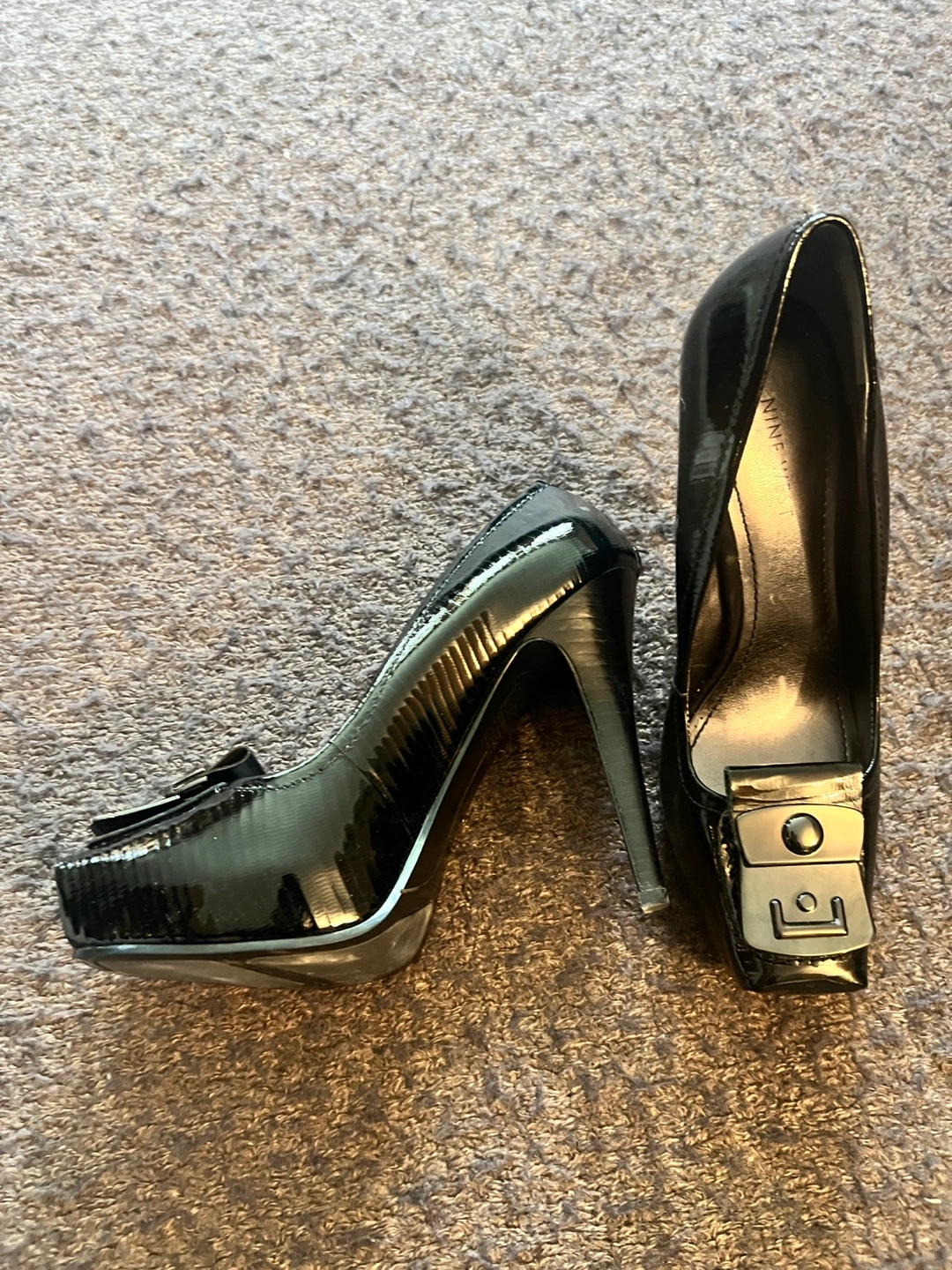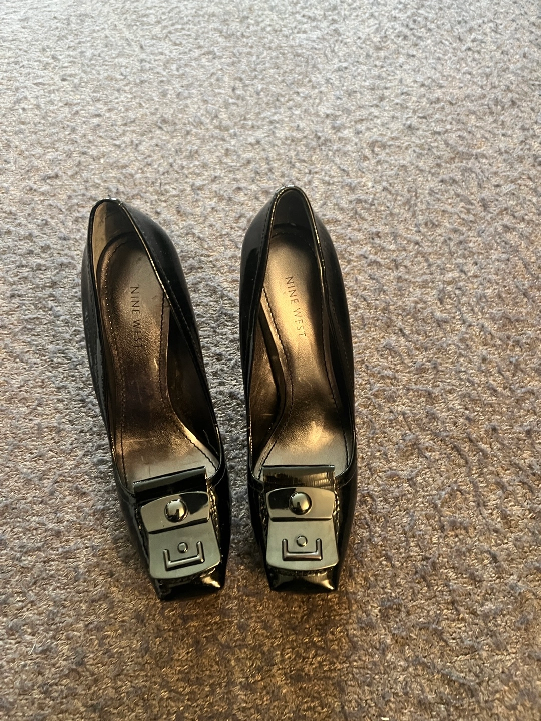 These patent black heels would look great with your next dress. Worn once they are beautiful on Doing a closet clear out can no longer were heels. Cash only Thank you