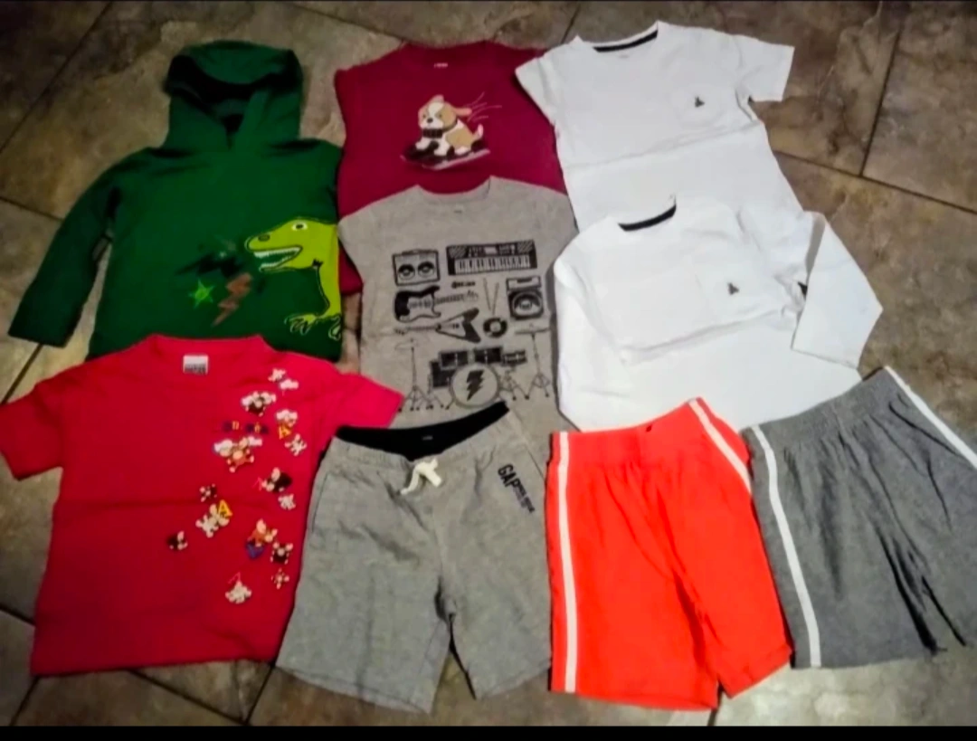 Boy's clothing size 4 Almost all items are from the GAP and Gymboree stores. Swimming shorts (yellow & grey) are Tommy Hilfiger $5. Long and short sleeve shirts, shorts and long johns (red) are $3 each. Ten pairs of underwear $5 or 2 for $1 All 30 items for $50