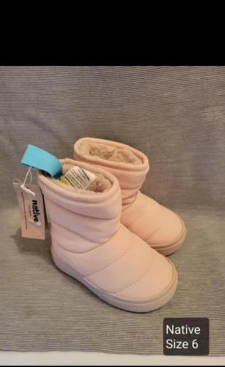 These baby boots are pink with a white sole, and they have a soft interior. They would be perfect for keeping little feet warm and cozy during the colder months. Brand new , size 6 toddler