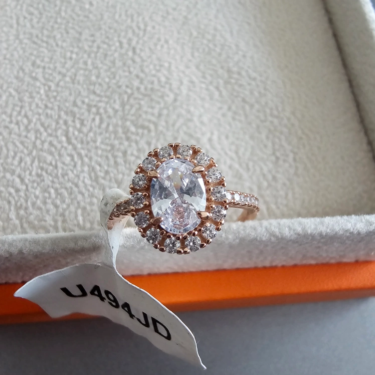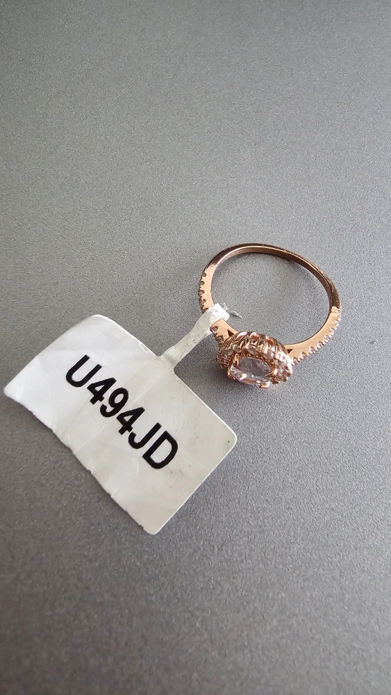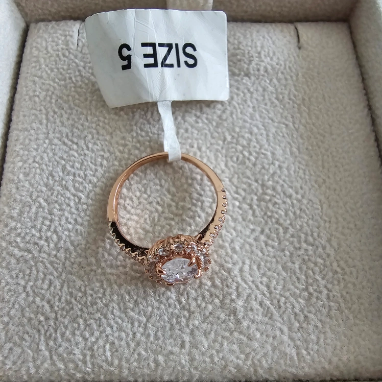 Beautiful ring with an oval center stone. Surrounded by a sparkling halo. From Charmed Aroma. size 5. appraised at $45.