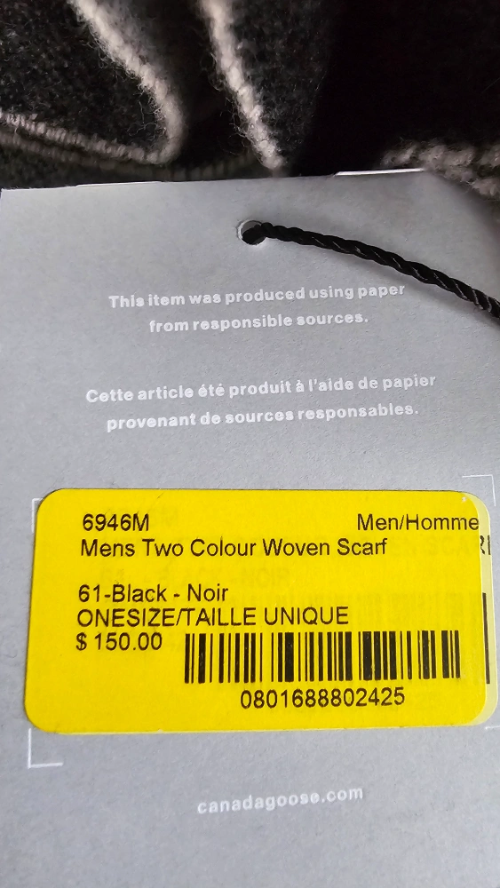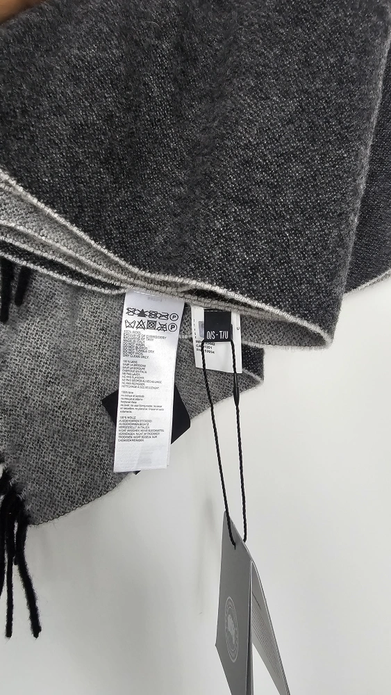 A nice Canada Goose scarf. Features a two-colour design. Has a stylish fringe. Perfect to keep you warm on a chilly day.