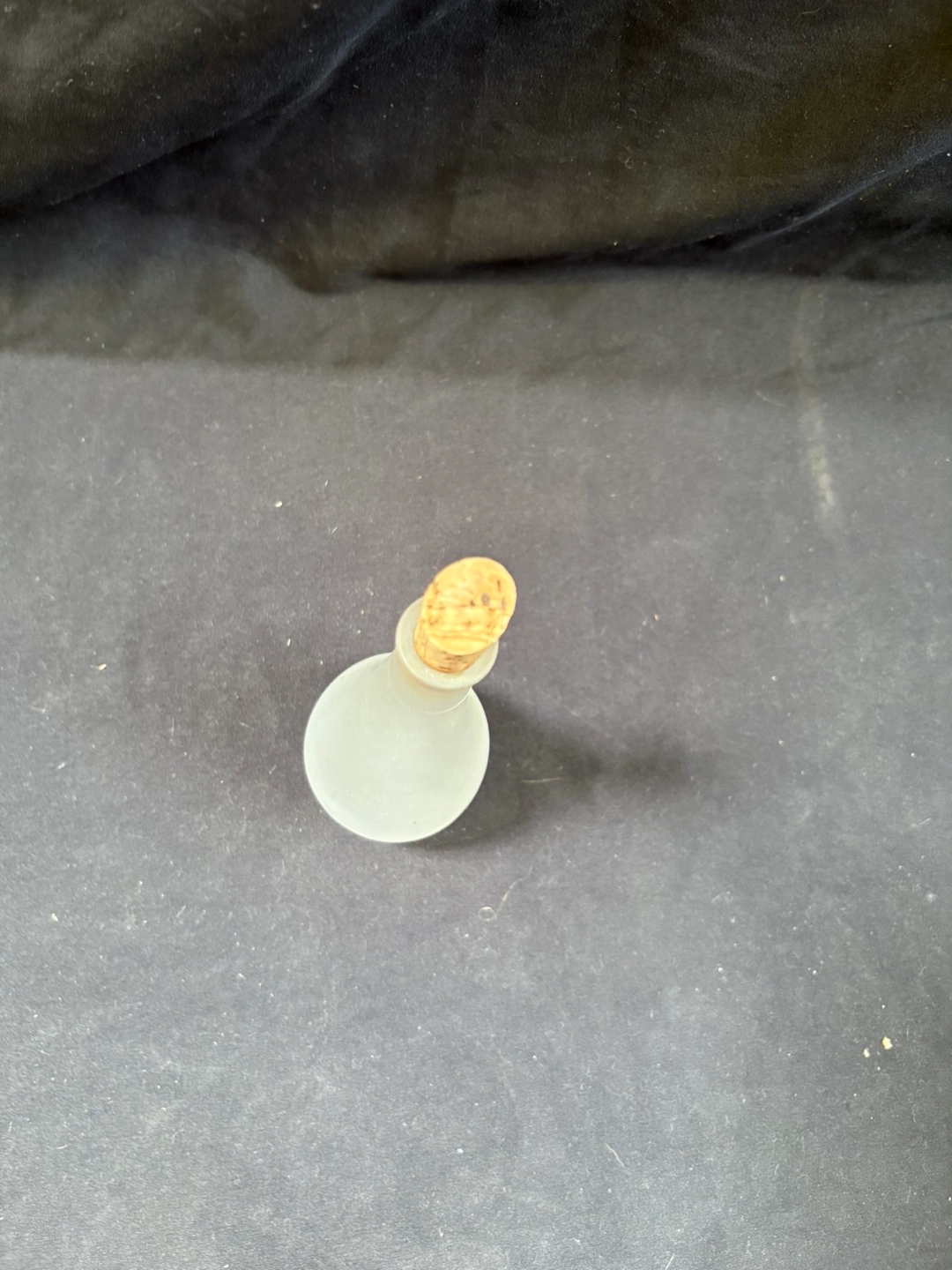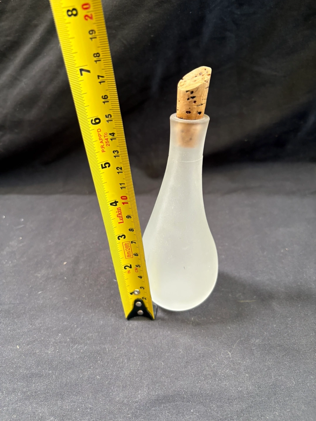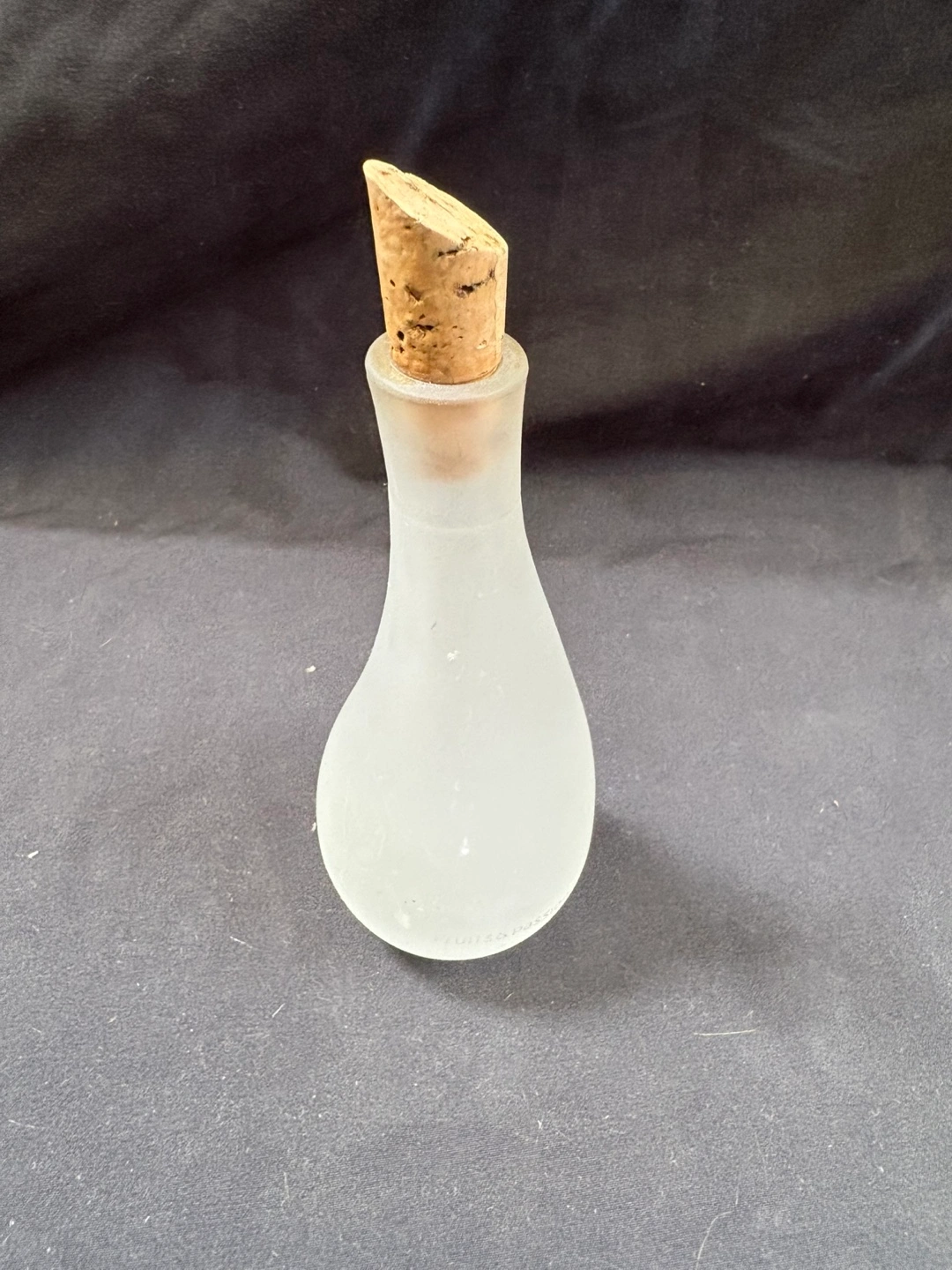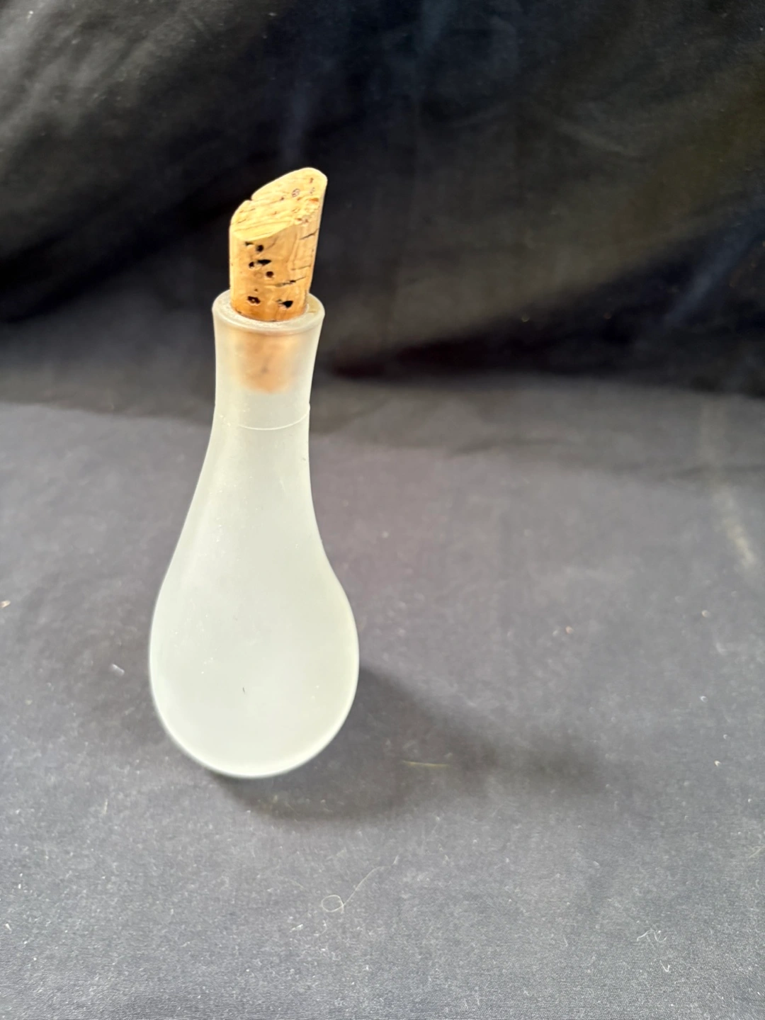 Like new Small Frosted Glass Bottle with Cork I am selling a small glass bottle. It has a frosted finish and a cork stopper. You could use it to store your favourite essential oils to bring a bit of serenity to your day.$1 Pick up Victoria park & O’Connor area