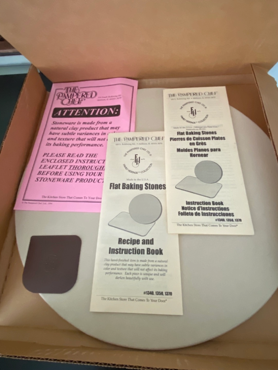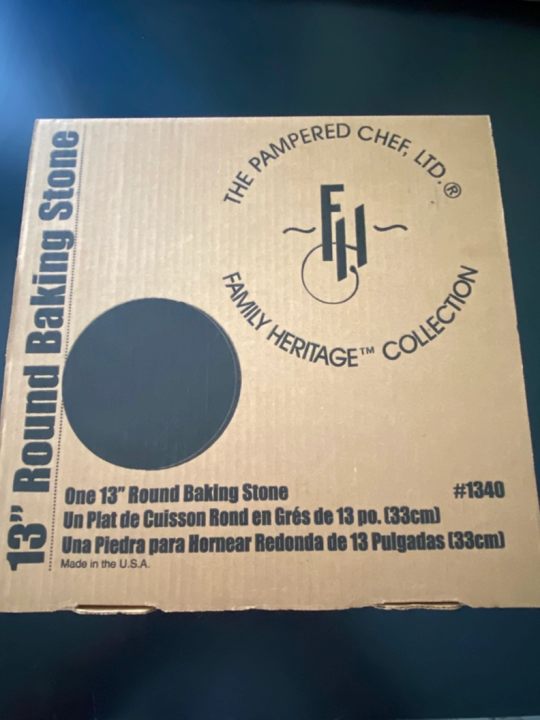 NEW!! Pampered Chef 13” Round Baking Stone! Family Heritage Collection! Recipe and Instruction Booklet with mini brown scraper included. Great for pizza, breads, etc. makes a great gift for the cook/chef in the family. Never used. Excellent Condition! Cash and pick up only, Cawthra and Lakeshore area in Mississauga. Price is Firm!