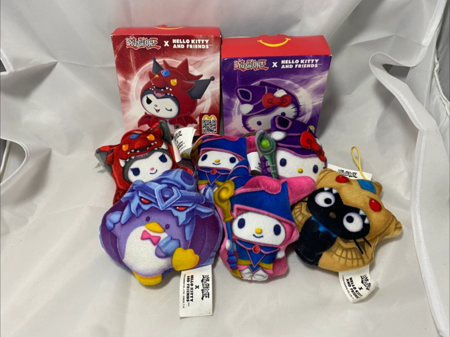 Delight in the fusion of fandoms with this exclusive Hello Kitty X Yu-Gi-Oh! McDonald's Happy Meal Toys lot of 8, dated 2024. Collectors and fans alike will appreciate the intricate details and design that Sanrio has brought to these figures, showcasing the beloved characters from both worlds. Each toy in this set is a testament to the cross-cultural appeal of Hello Kitty and the strategic play from McDonald's, offering a unique addition to any collection of fast food memorabilia or character family collectibles. Don't miss your chance to own a piece of this playful collaboration.