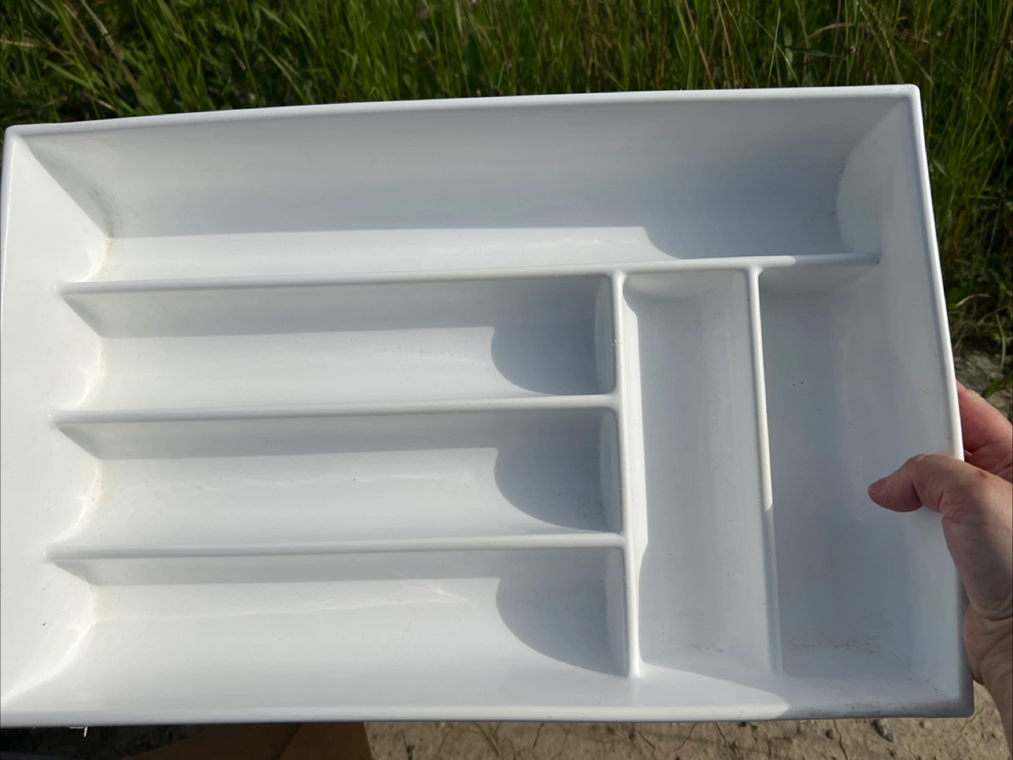 A white cutlery tray, perfect for organizing your silverware. There are different compartments. This tray can help bring calmness to your morning routine.