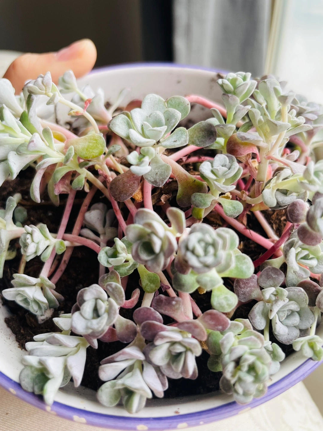 Cute and full pot of Sedum ‘Purpureum’ 🪻 Rosette-style succulent with silvery green leaves and purple stems. Low maintenance and loves bright light. Grows well in this handmade-style bowl planter! Pickup near Sapperton (New Westminster), or can meet along the Expo Line 🚆