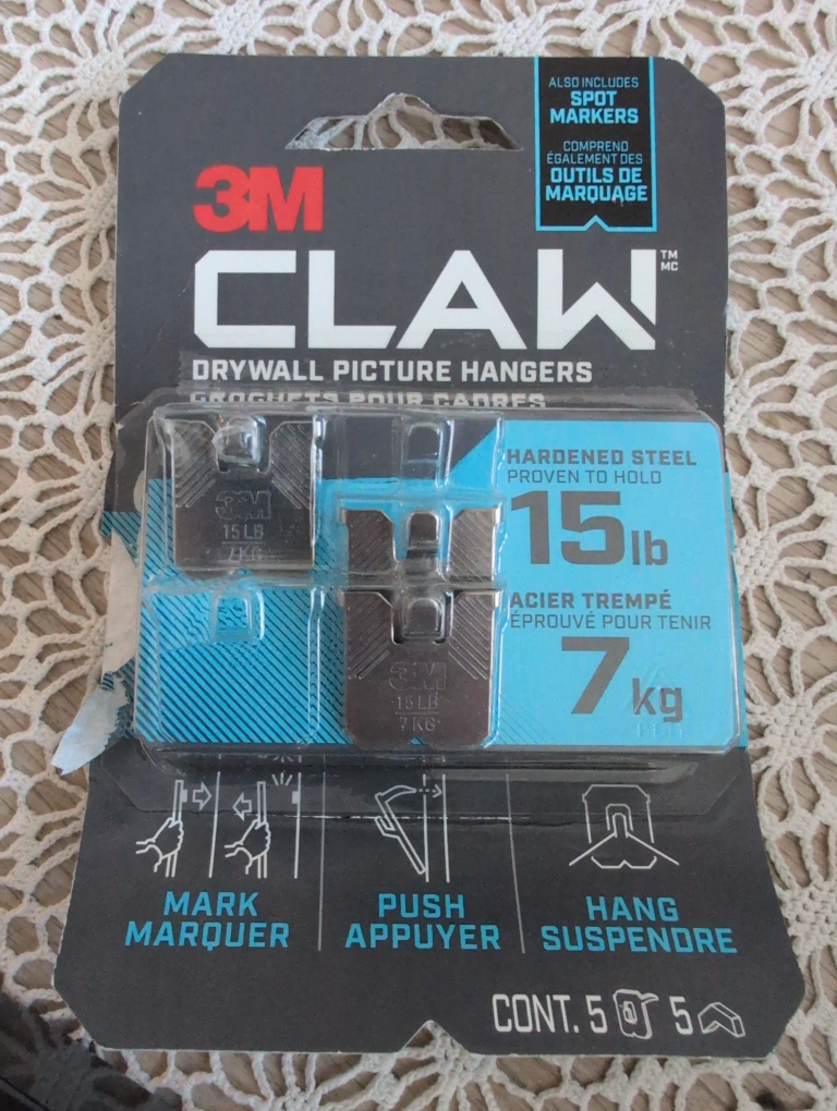 A package of picture hangers. Comes with spot markers. Easy to use. These picture hangers will add some calm to your home decor.. have 3 in it. used 2 but no use for others...