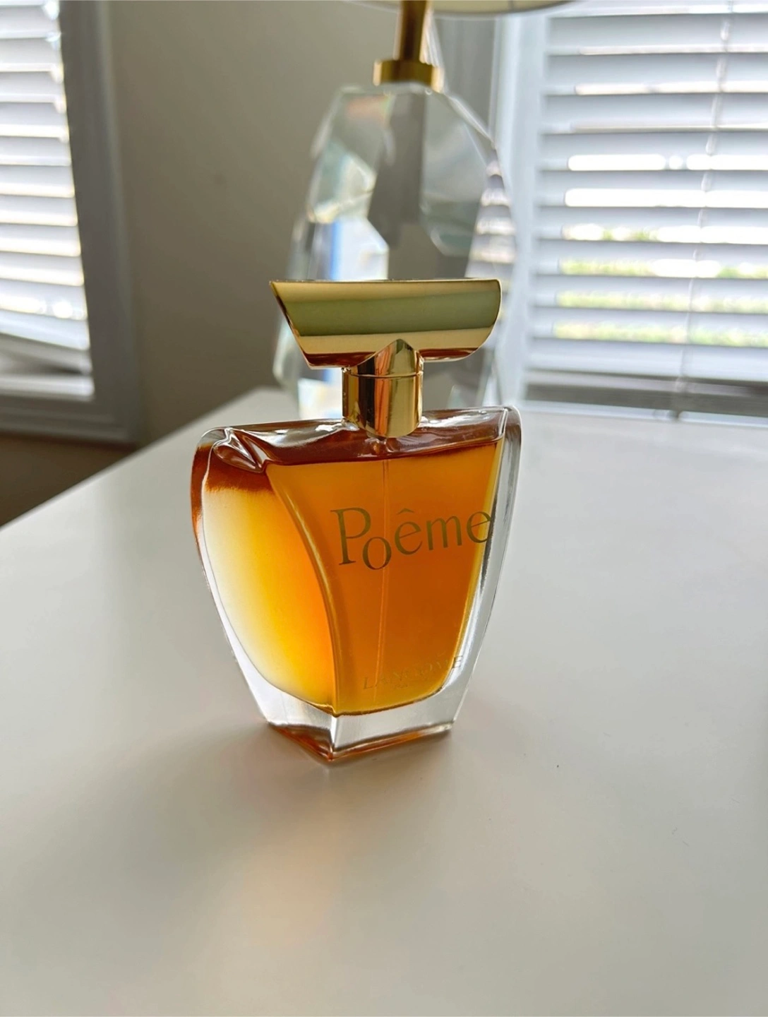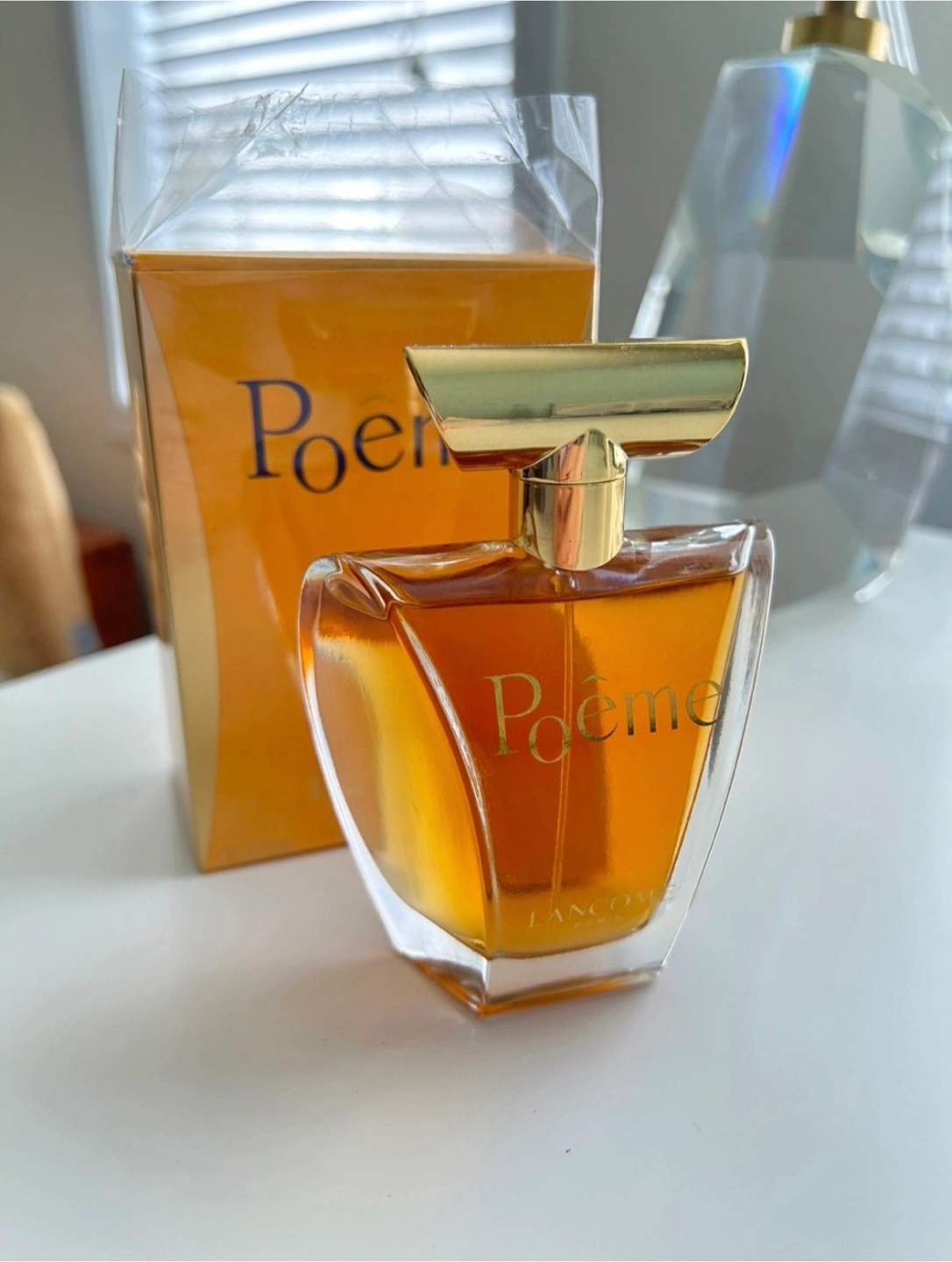 Comes with original box Sprayed few times but not my scent. Still like new condition. Is sold by Lancôme and in Shoppers for 140+tax Poeme by Lancôme is a Floral fragrance for women. Poeme was launched in 1995. The nose behind this fragrance is Jacques Cavallier Belletrud. Top notes are Narcissus, Datura, Peach, Plum, Himalayan Poppy, Mandarin Orange, Black Currant, Bergamot and Green Notes; middle notes are Mimosa, Vanilla Flower, Tuberose, Ylang-Ylang, Orange Blossom, Jasmine, Freesia, Heliotrope, Rose and Leather; base notes are Vanilla, Orange Blossom, Amber, Tonka Bean, Musk and Cedar.