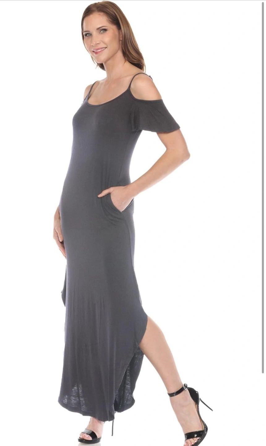 New with tag! Retails for $38 A stunning maxi dress. Features cold shoulder sleeves. Includes a pocket. The dress flows well. It would be great to wear while enjoying a relaxing stroll. FEATURES: 2 Side Pockets, Scoop Neckline, Cold Shoulder Short Sleeves, Maxi Length, Lightweight Fabric MATERIAL: Cold Shoulder Maxi Dress is made from premium 95% Rayon/5% Spandex. The soft stretch fabric provides comfort without clinging, while the full-length design adds flow and ease of movement. STYLE AND OCCASION: Designed with adjustable spaghetti straps, two (2) side pockets and flutter sleeves, it offers a lightweight feel and an easy, elongated silhouette. Whether you're heading to brunch, the boardwalk, or a weekend getaway, this versatile dress brings effortless style to any casual occasion.