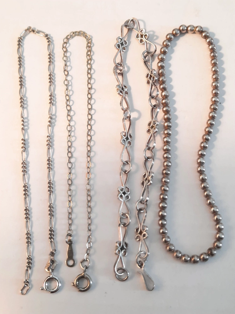 Here are some silver925 bracelets. Features varying chain styles. Includes clasps for secure wear. A beautiful addition to any jewelry collection, these pieces are perfect for layering or wearing alone.