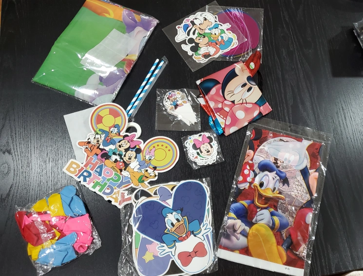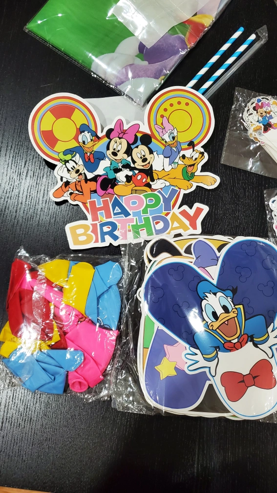There are multiple party items here, including balloons, toppers, and decorations. Many feature Mickey Mouse, Minnie Mouse, and Donald Duck. Throwing a birthday party will be easy with these. pick up Hespeler Cambridge