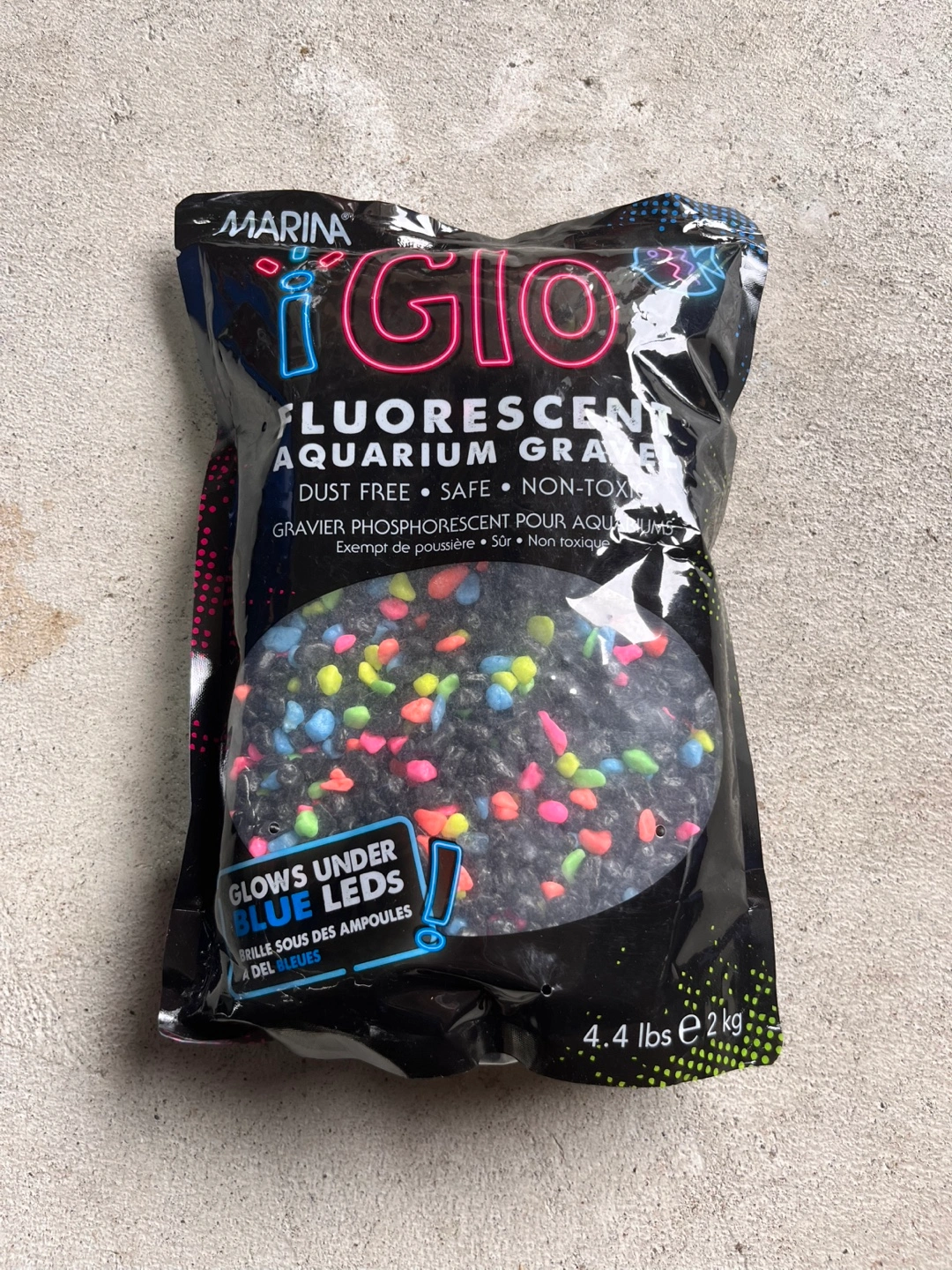 Bag of gravel for aquariums. Glows in the dark under blue LED lights. You can use this to create a beautiful and relaxing aquatic environment for your fish.