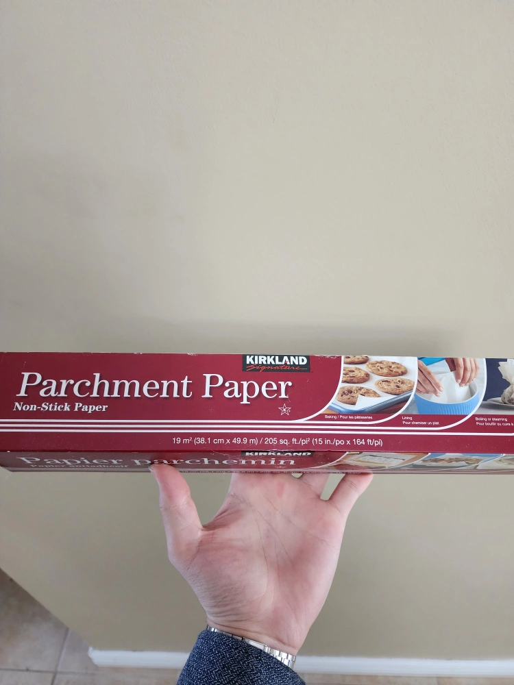 New Parchment paper roll. The product is non-stick. Perfect for lining baking sheets. You might find baking a meditative practice with this.