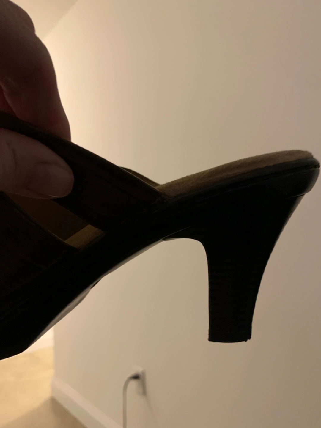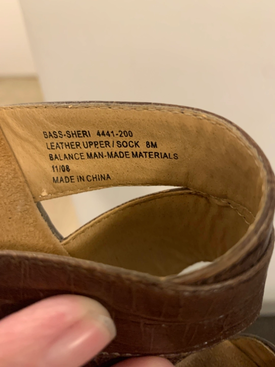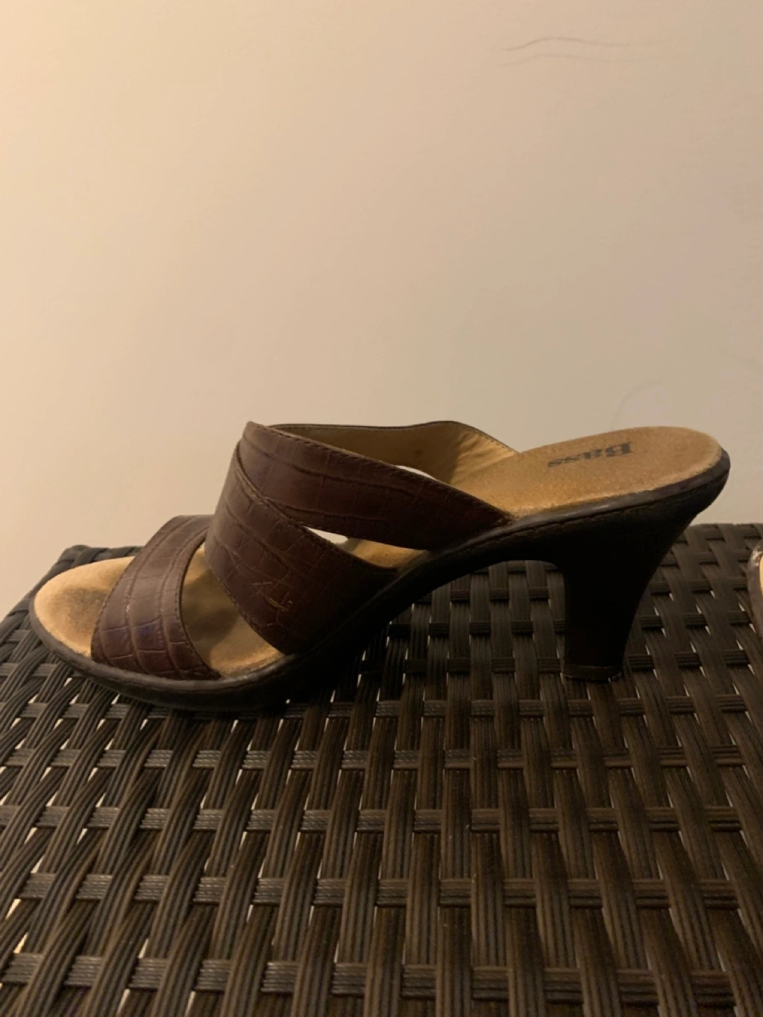 Size 8. Bass dark brown leather heeled sandals in excellent used condition. Only worn a couple of times. Unfortunately I don’t have the box. The inside of the shoes is cushioned and lovely. Heel is 3”. They fit true to size. Pick up in Roncesvalles. No Holds Please. Same Day/Next Day pick up preferred.