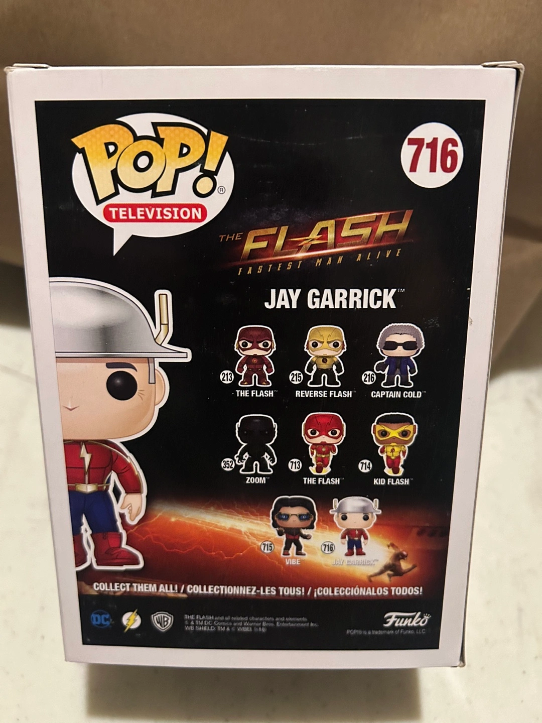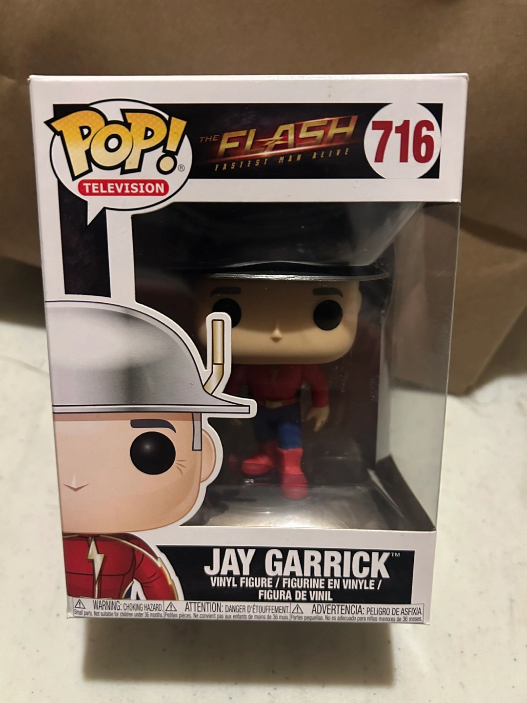 A Funko Pop! vinyl figure. Depicts the character Jay Garrick from The Flash. The figure is in its original box. Perfect for displaying on a shelf after a long day.