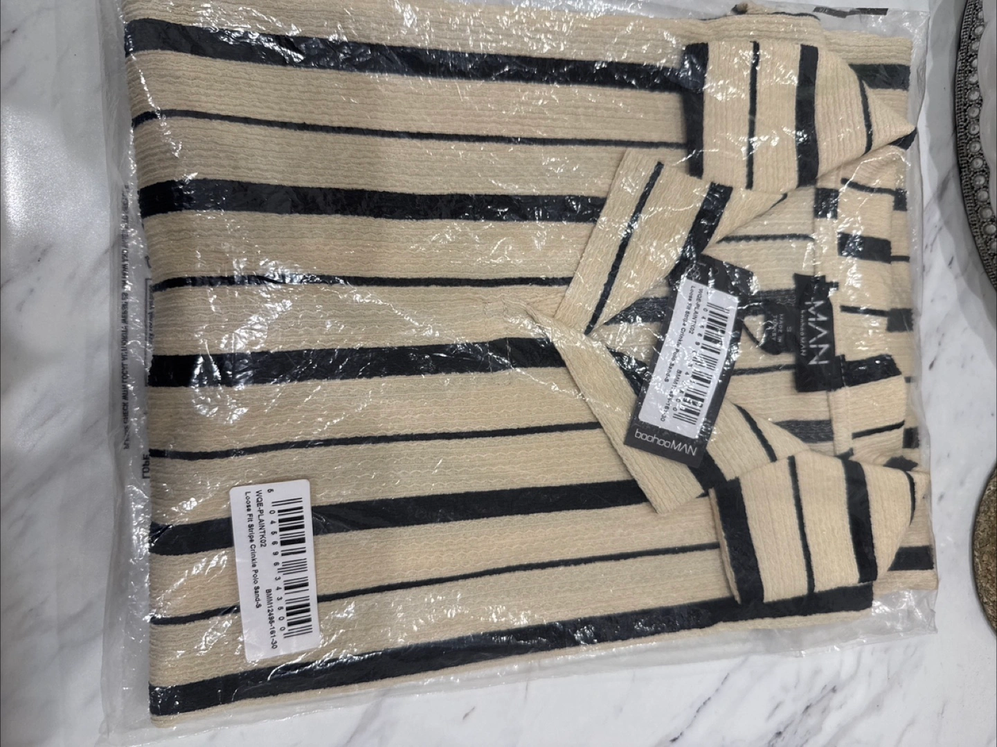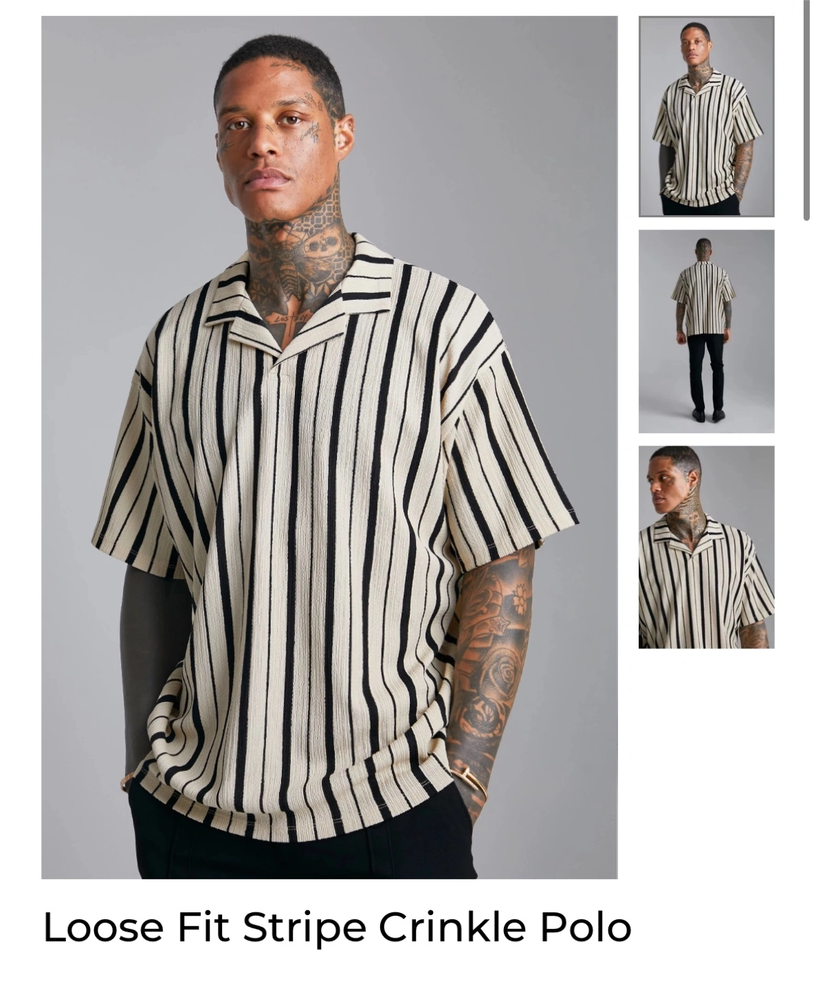 Featuring a short-sleeved design. Comes in neutral tones with vertical stripes. Great addition to your wardrobe, especially if you are looking for a calming item.