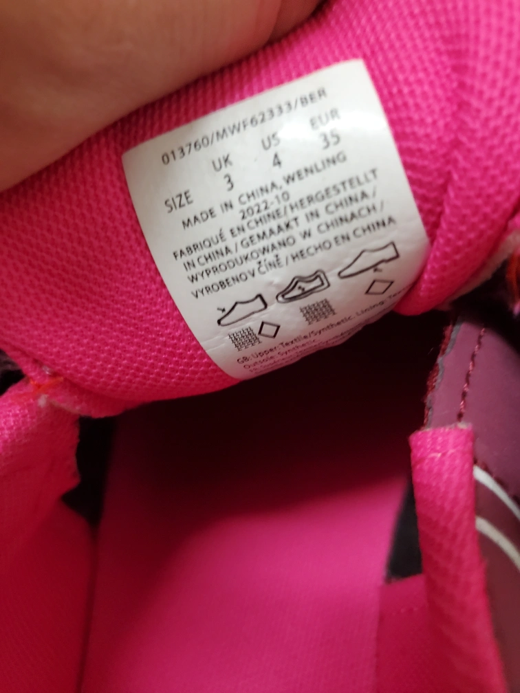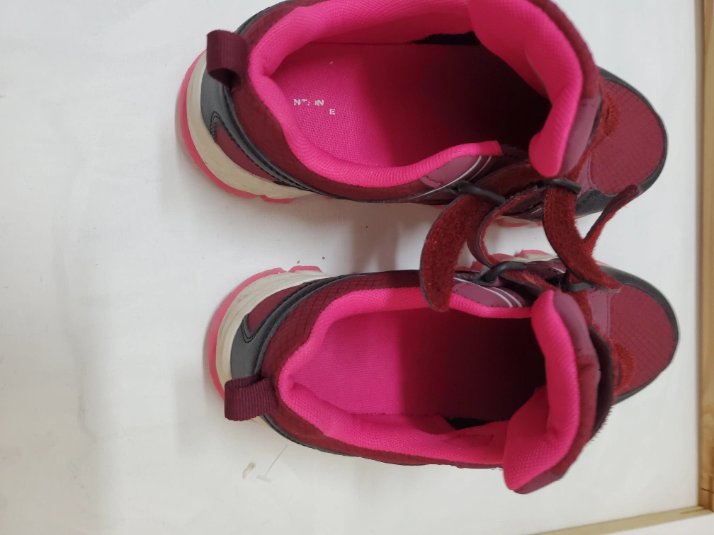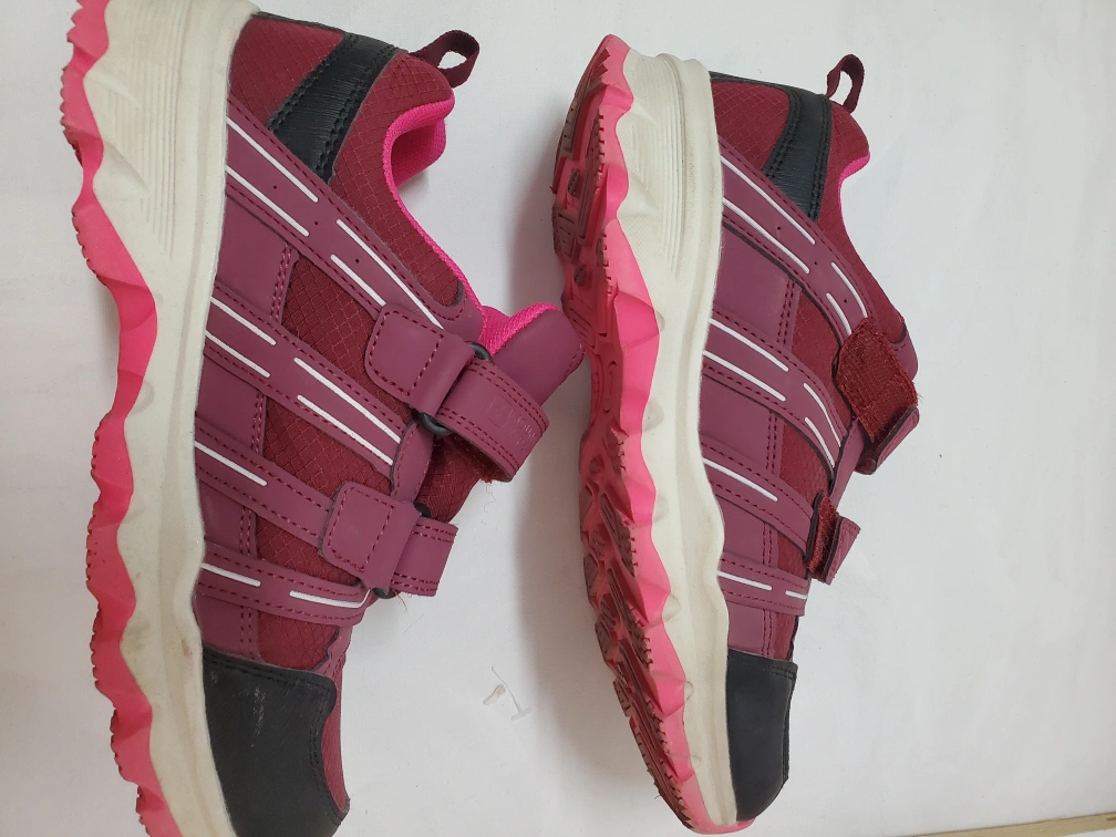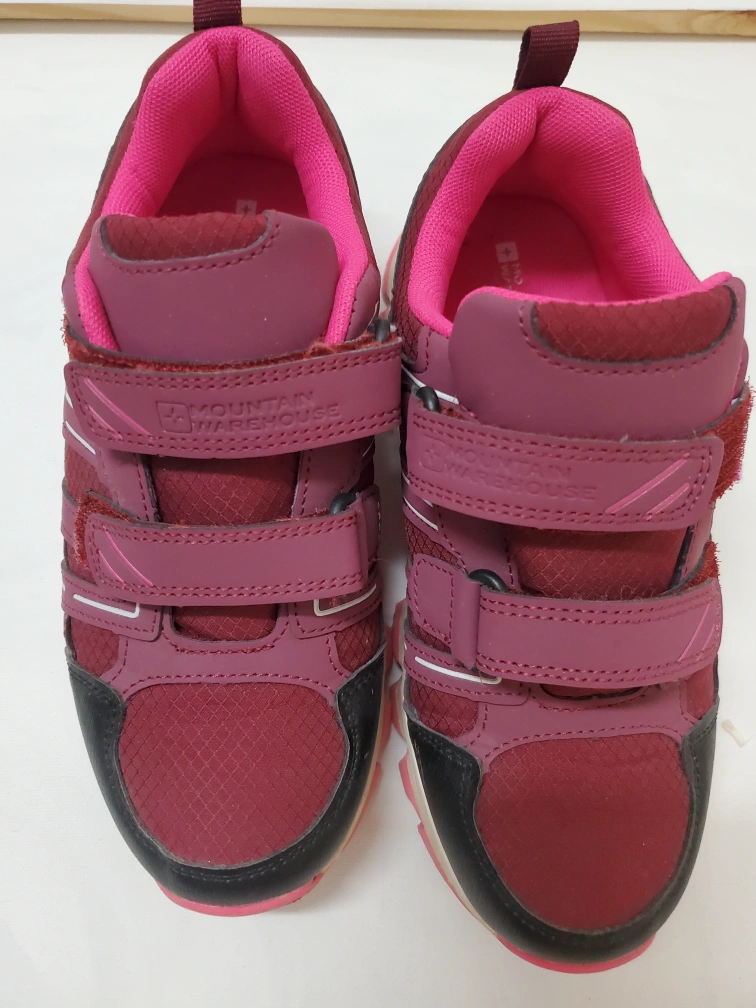 I am selling these Mountain Warehouse shoes. The colour is a dark red with pink and black accents. Featuring hook and loop closures. A great item to wear on your next hike or outdoor adventure.