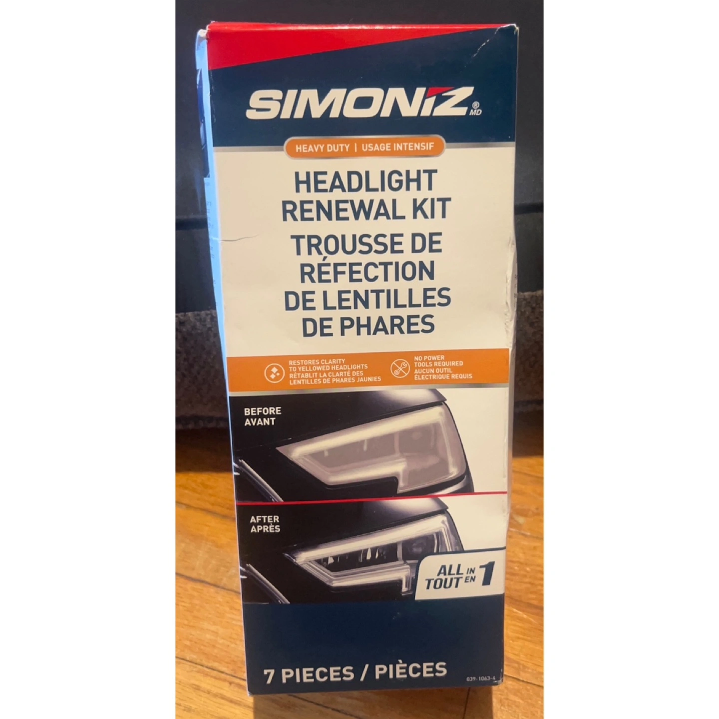 Revitalize your vehicle's headlights with the Simoniz Headlight Renewal Kit! This heavy-duty kit comes complete with multiple pieces, making it the perfect project to tackle when you want to relax and pass the time. Say goodbye to cloudy headlights and hello to improved visibility and safety on the road!