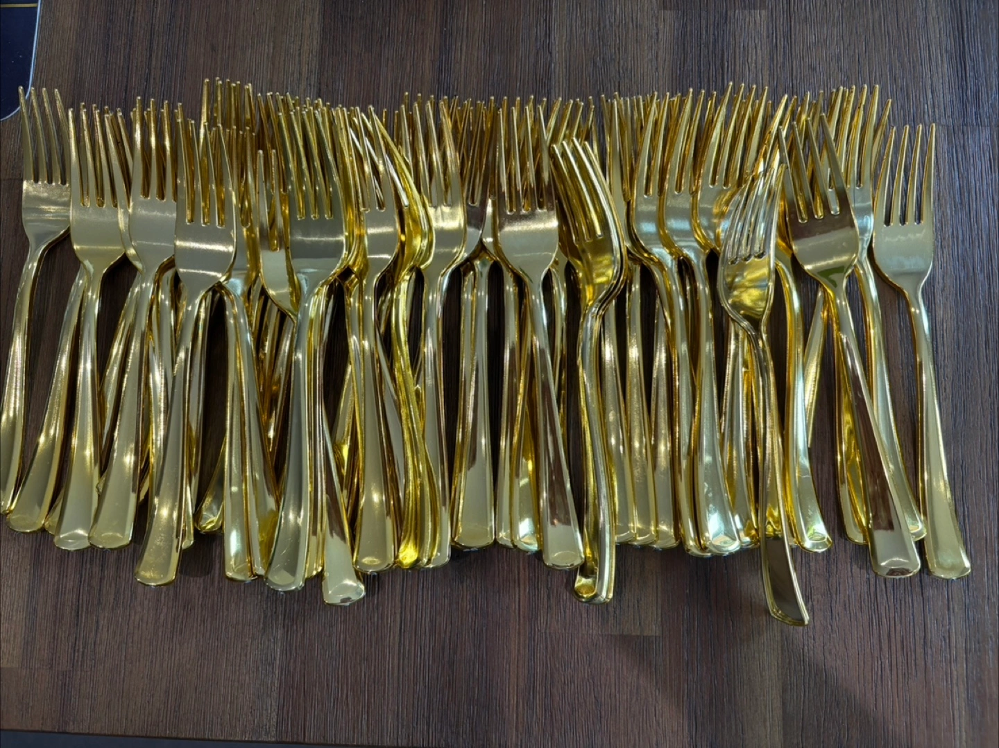 55+ SHINY Plastic gold forks party wedding utensils disposable